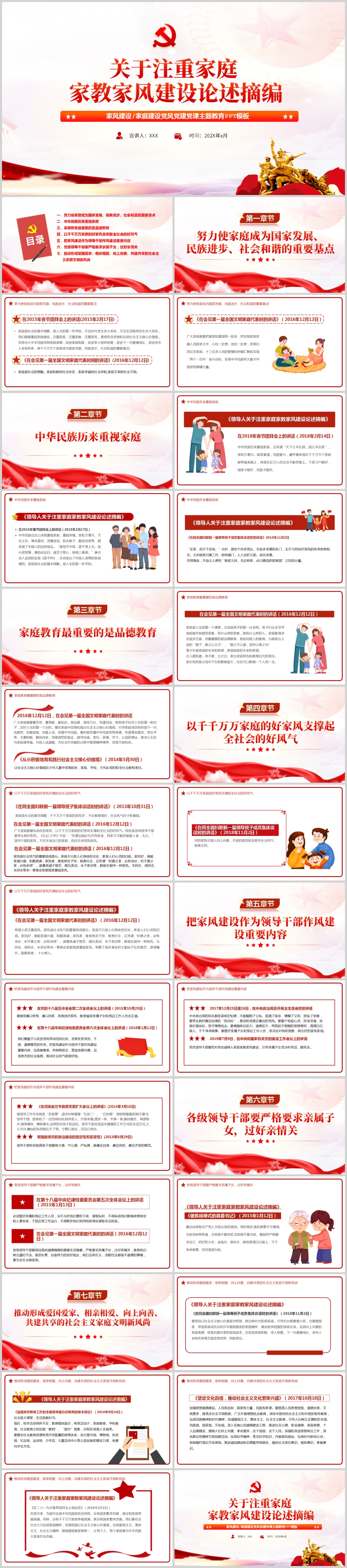 关于注重家庭家教家风建设论述摘编PPT