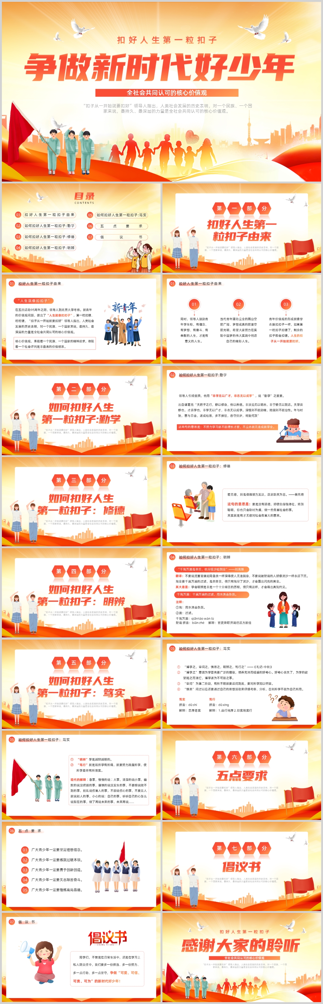 卡通风争做新时代好少年PPT模板