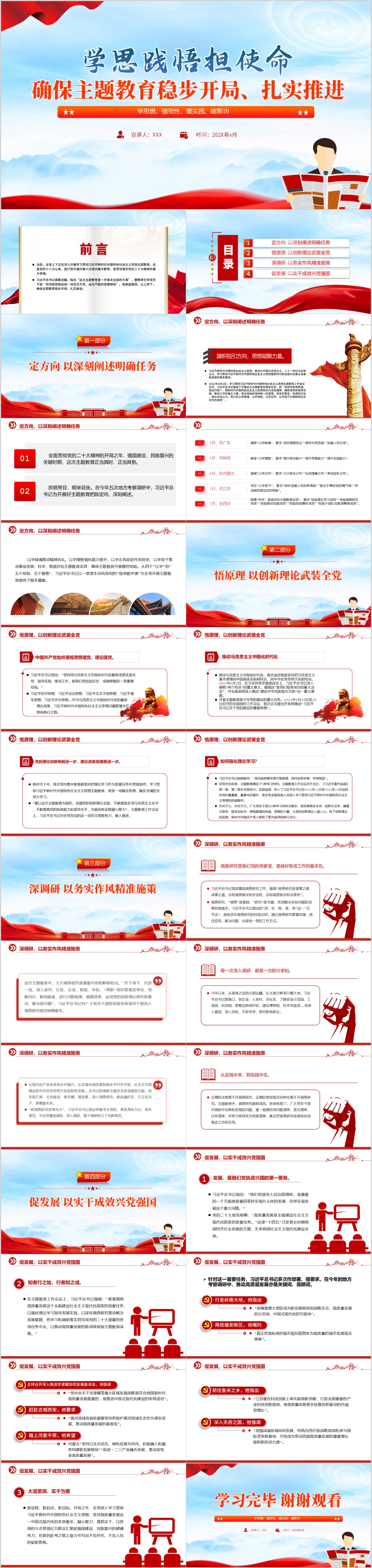 学思践悟担使命确保主题教育稳步开局、扎实推进专题党课PPT模板(内含WORD演