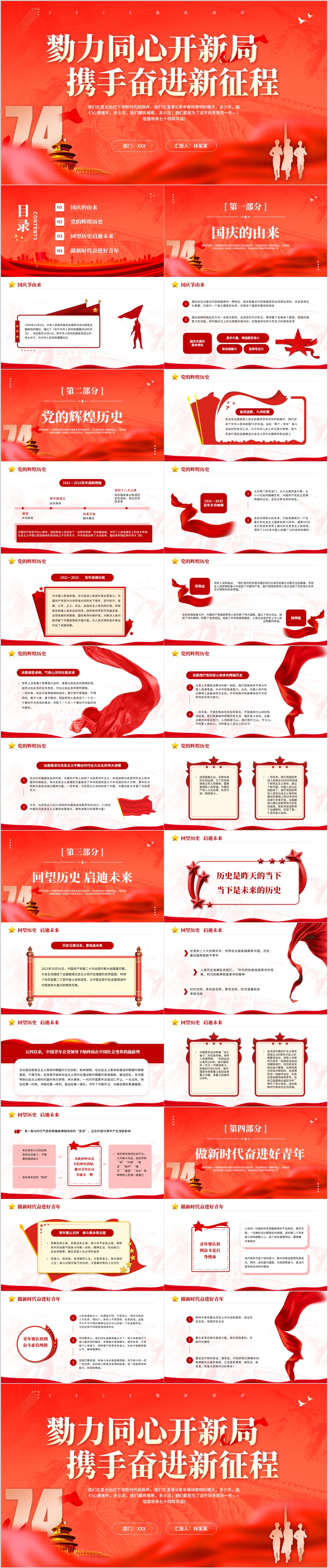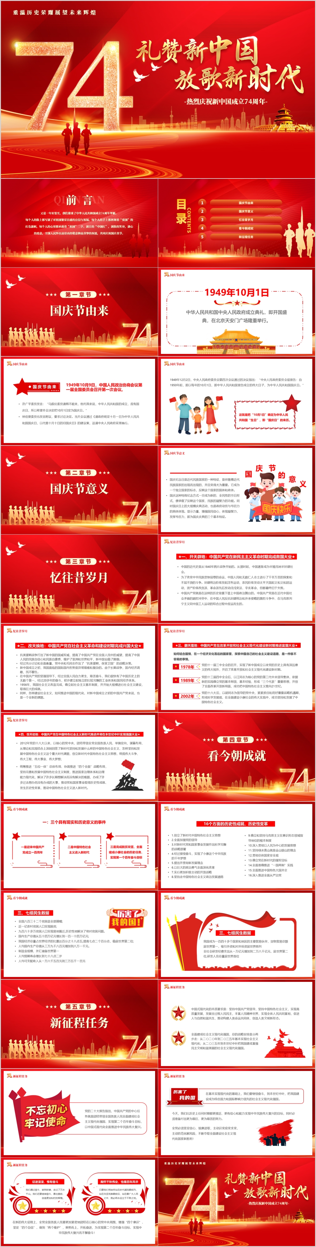 2023庆祝新中国成立74周年礼赞新中国国庆74周年党课PPT模板