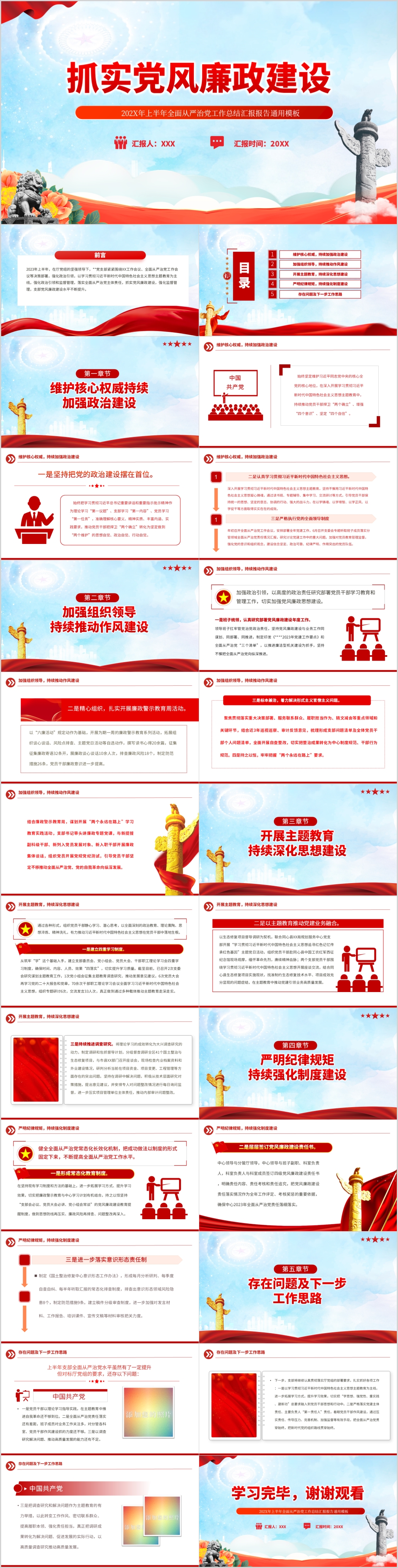 2023年抓实党风廉政建设上半年党建工作总结汇报报告ppt模板(内含WORD演讲稿)