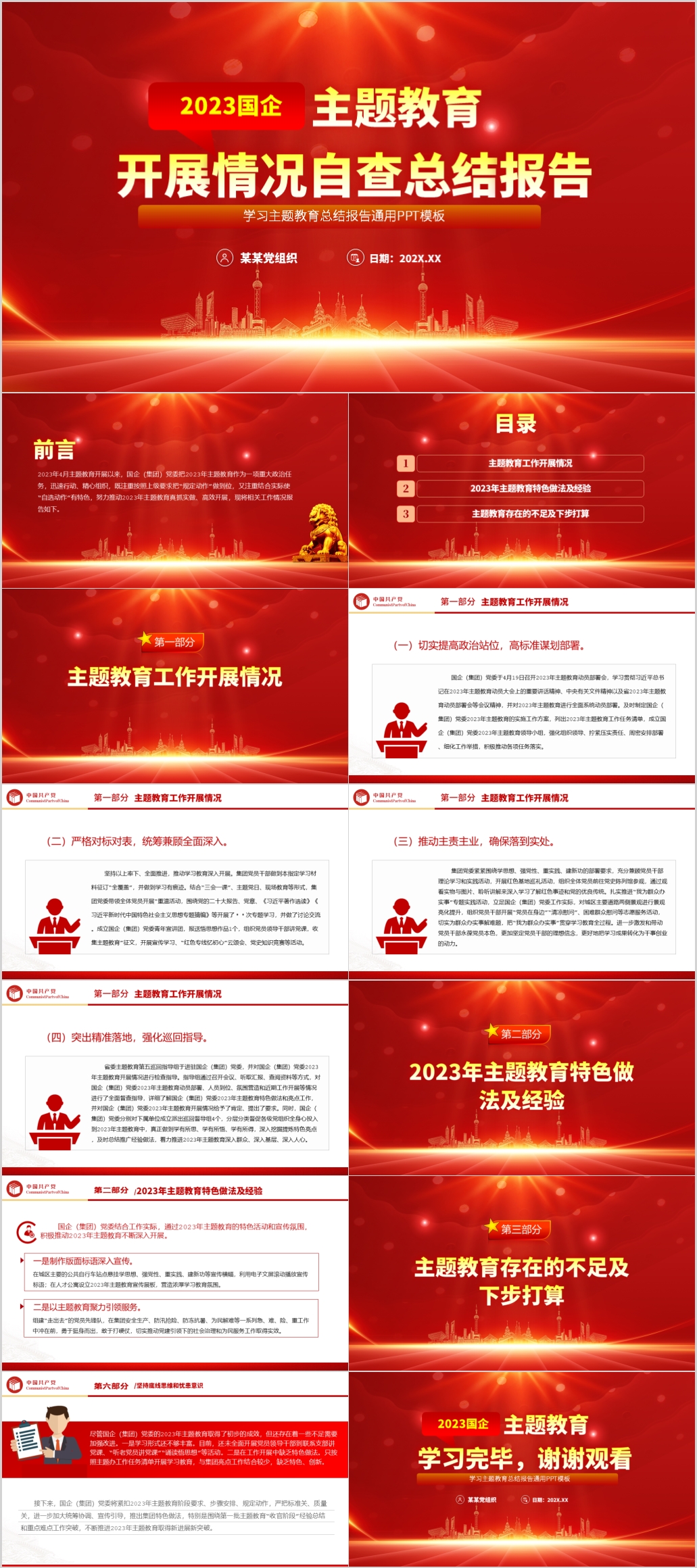 2023国企主题教育工作开展情况工作经验总结汇报PPT模板(内含WORD演讲稿)