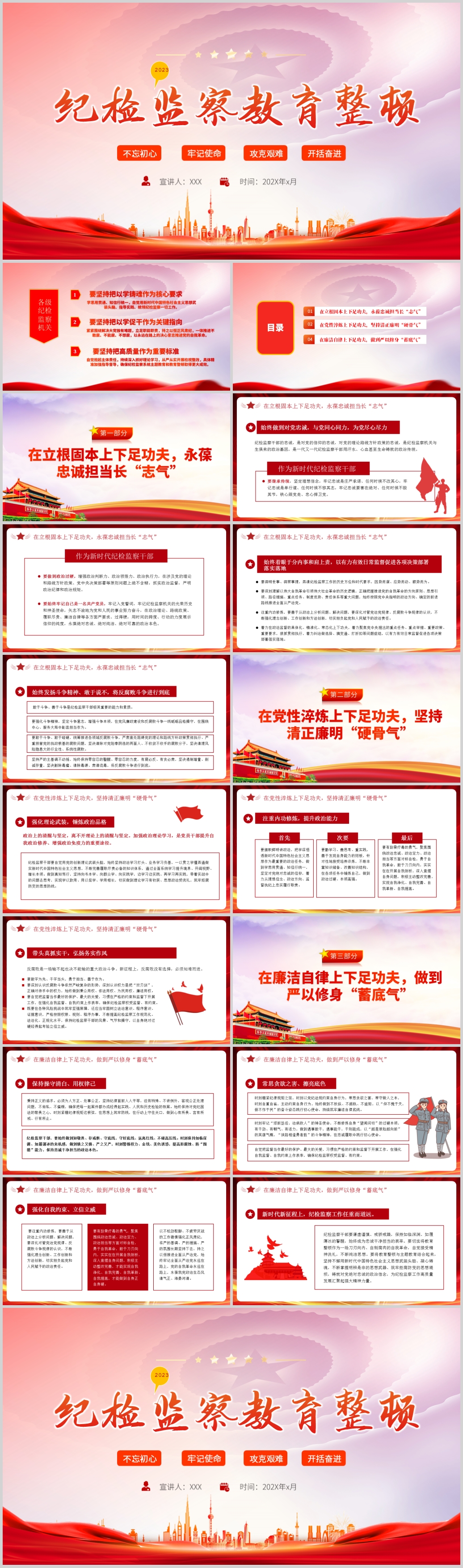 纪检监察教育整顿廉政教育党政党建微党课PPT模版