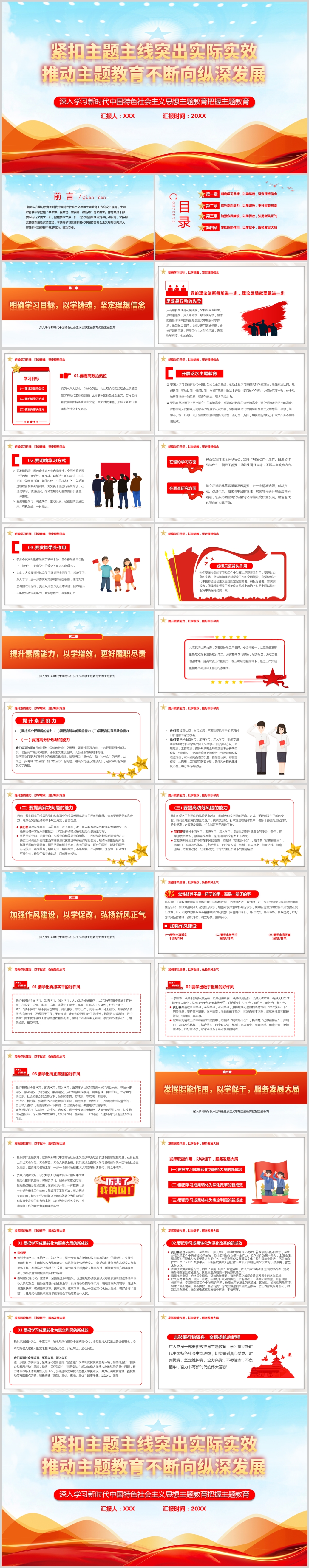 突出实际实效推动主题教育不断向纵深发展党建PPT模板