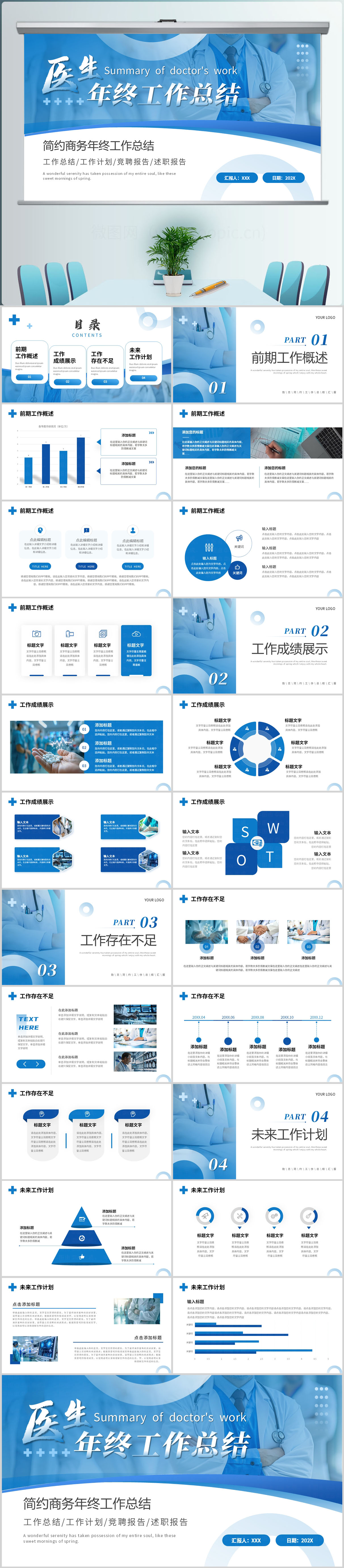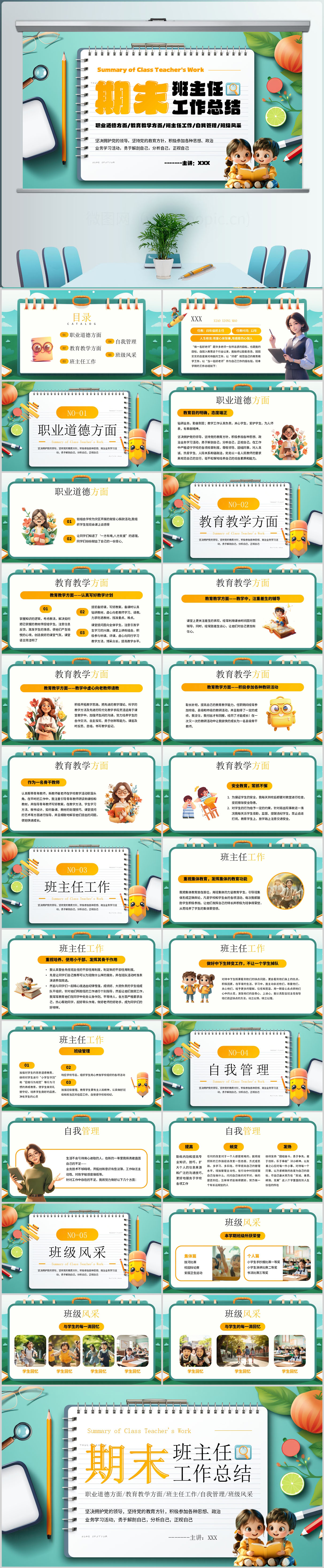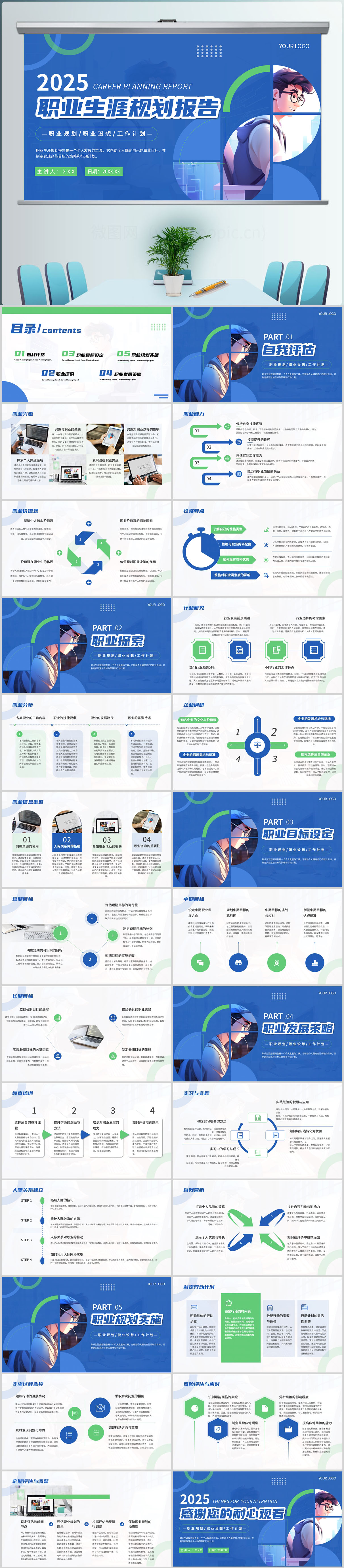 蓝绿色简约职业生涯规划工作报告PPT模板设计