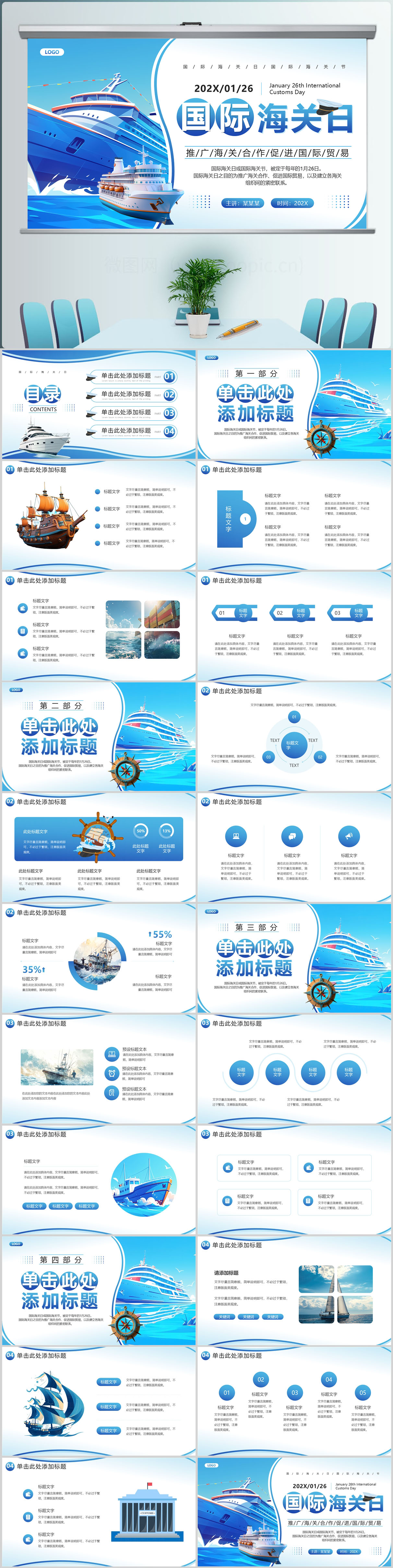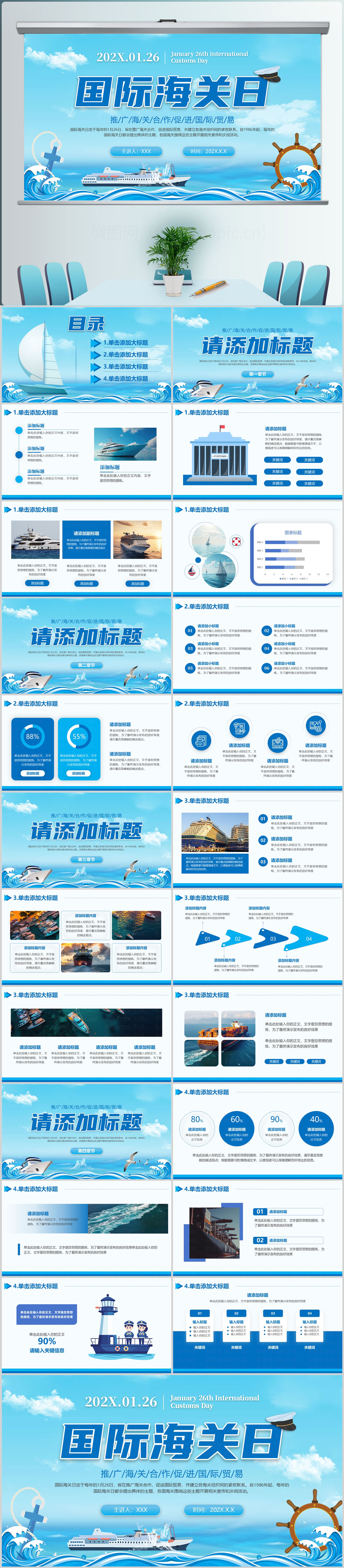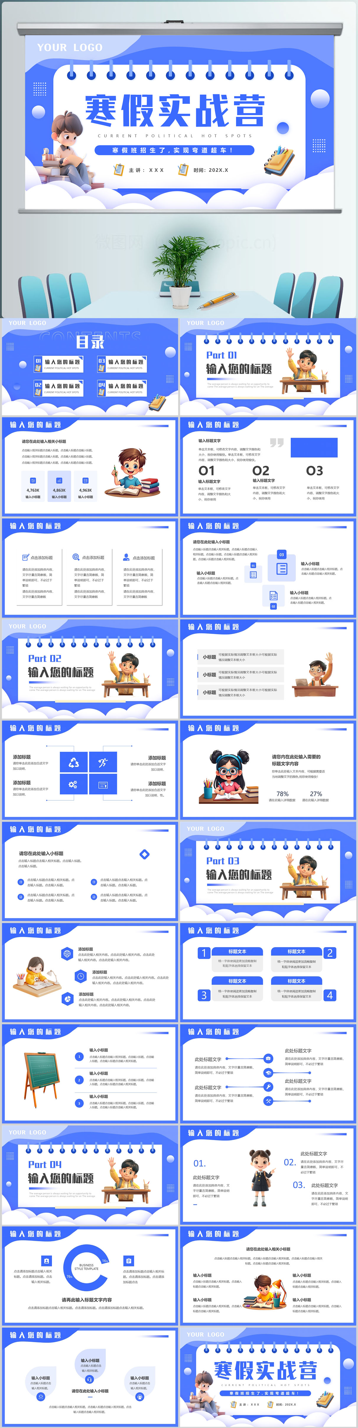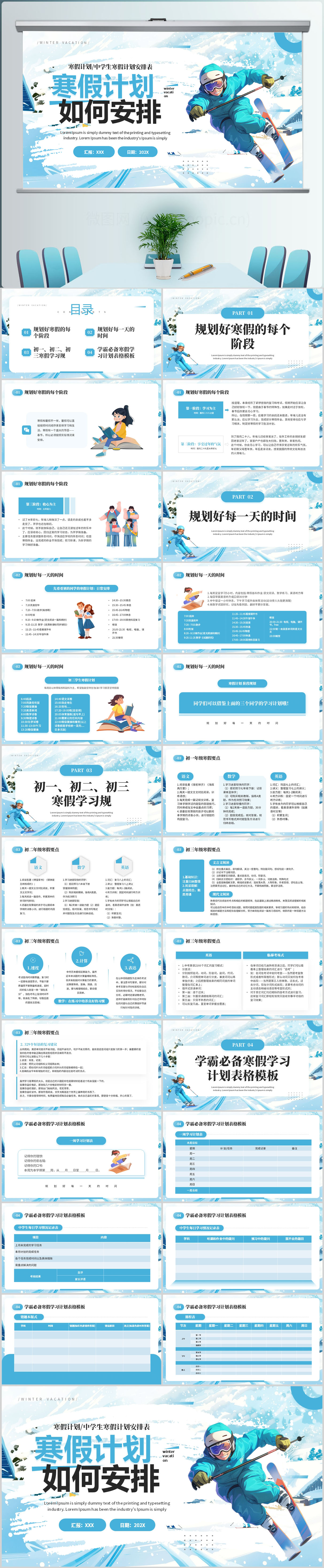 蓝色插画风冰雪之约冰雪大世界PPT模板设计