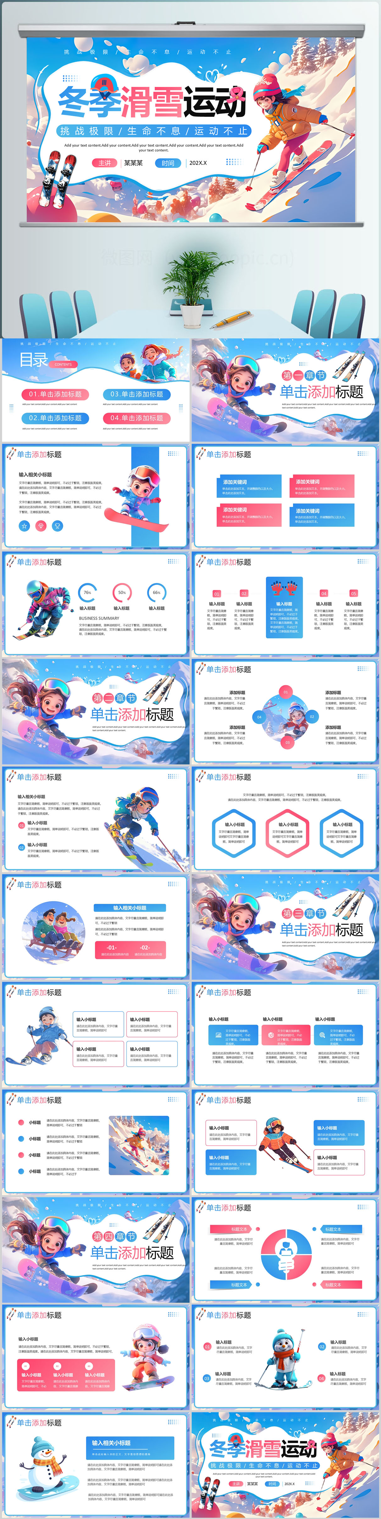 冬季户外极限运动冬季滑雪动态PPT模板设计