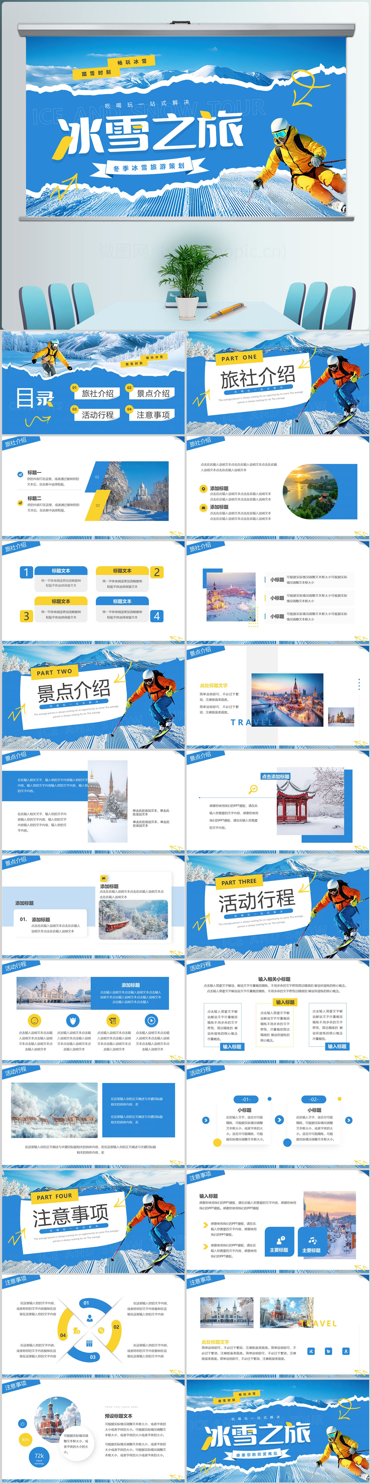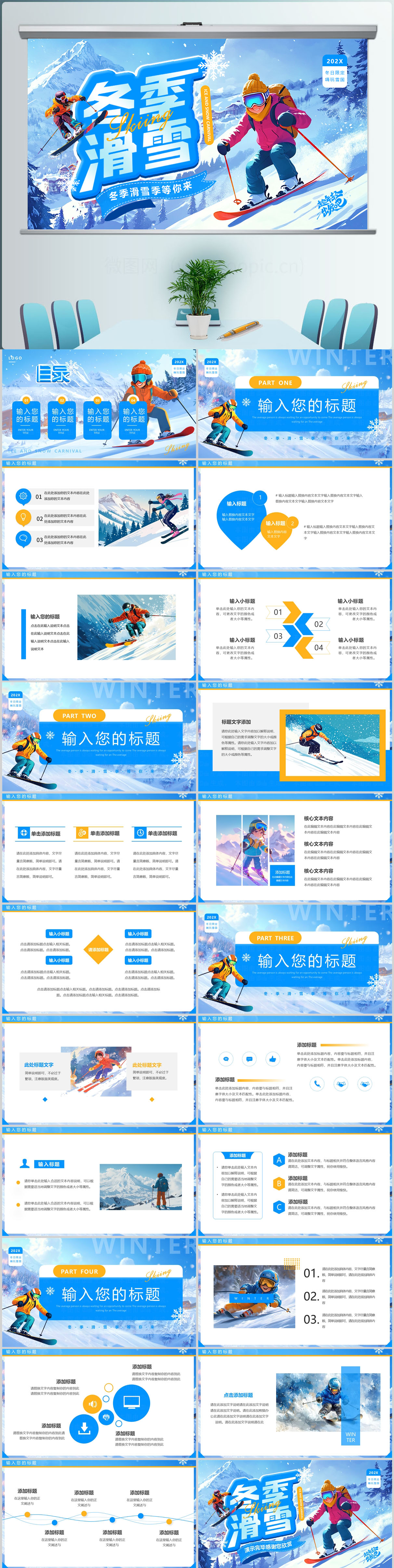 户外极限运动冬季滑雪冰雪运动PPT模版设计