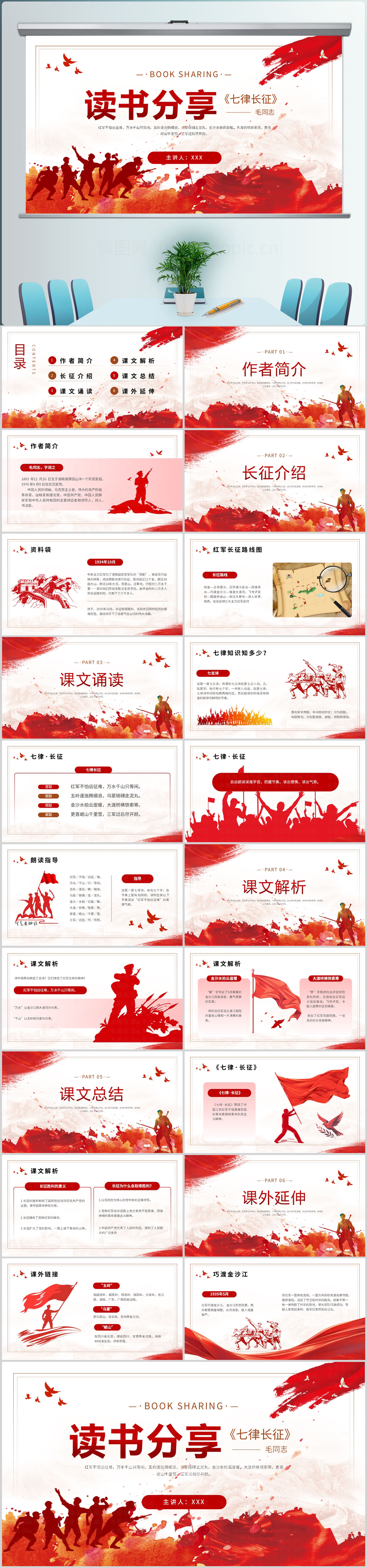 人教版五年级课件七律长征PPT模板设计