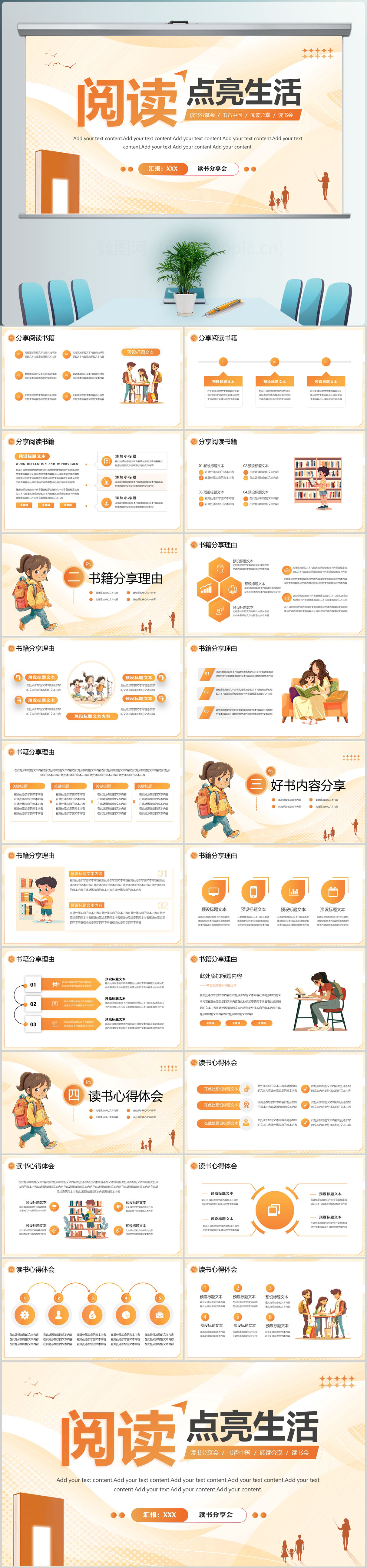 黄色简约阅读点亮生活分享会PPT模板设计