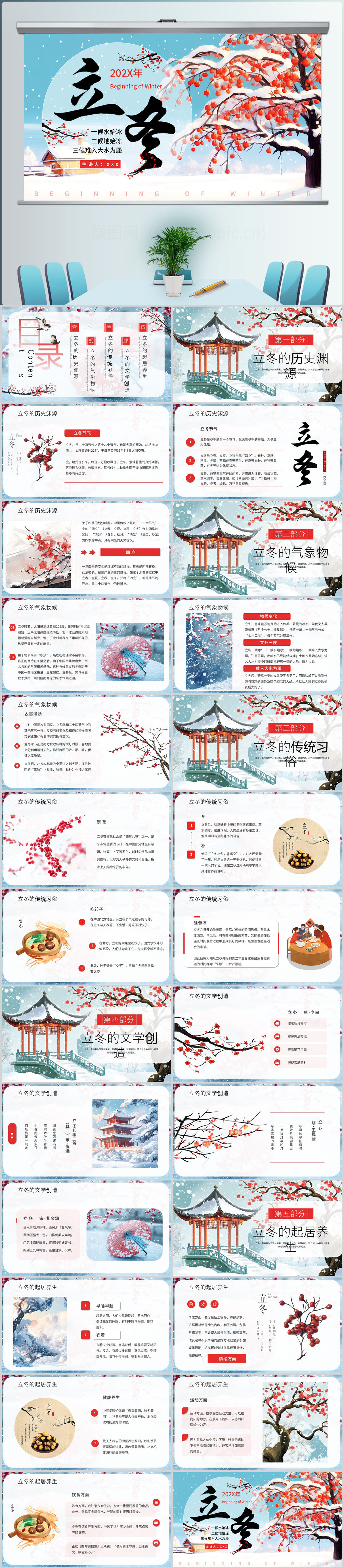 立冬节气介绍主题班会PPT模板设计