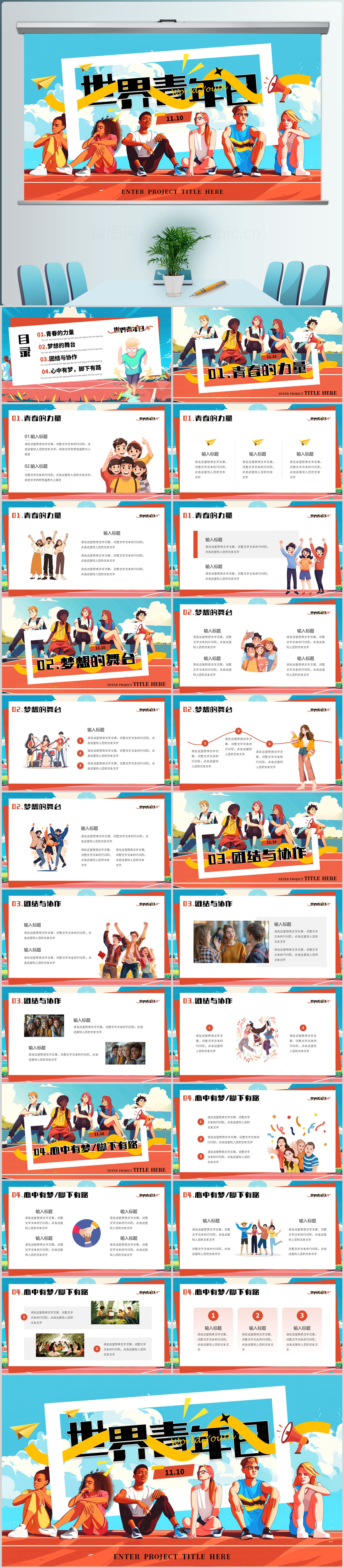 世界青年日学习交流PPT模板设计