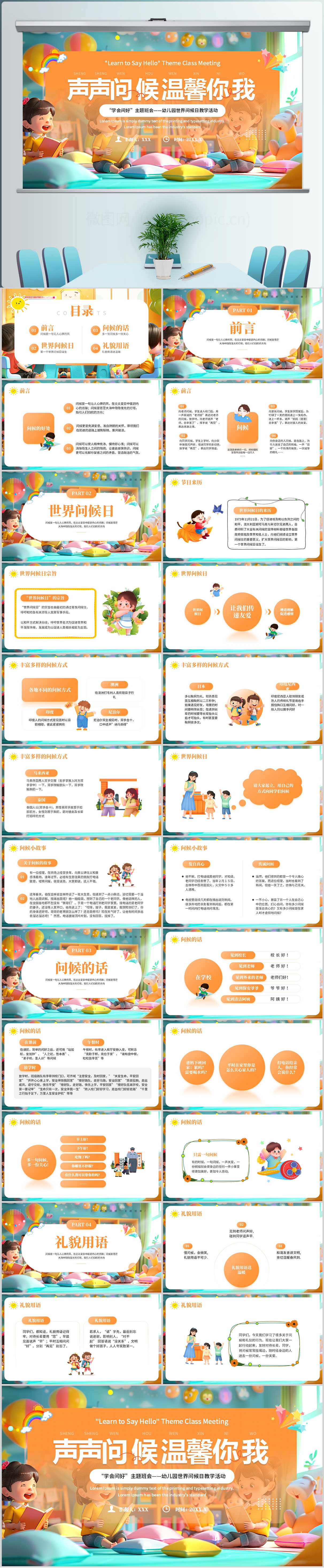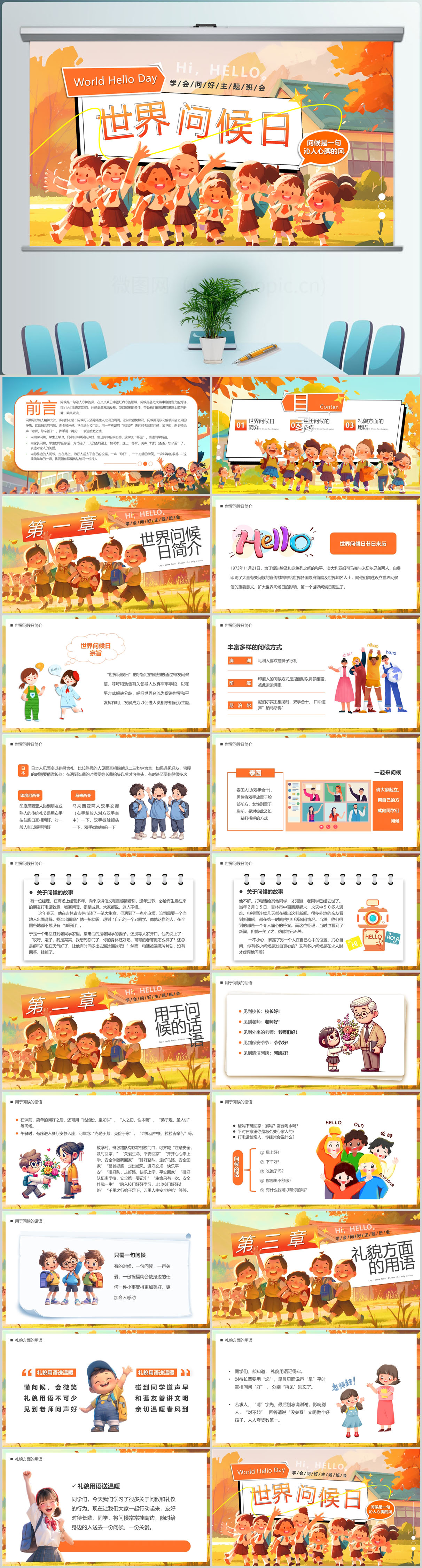 插画风世界问候日介绍PPT模版设计