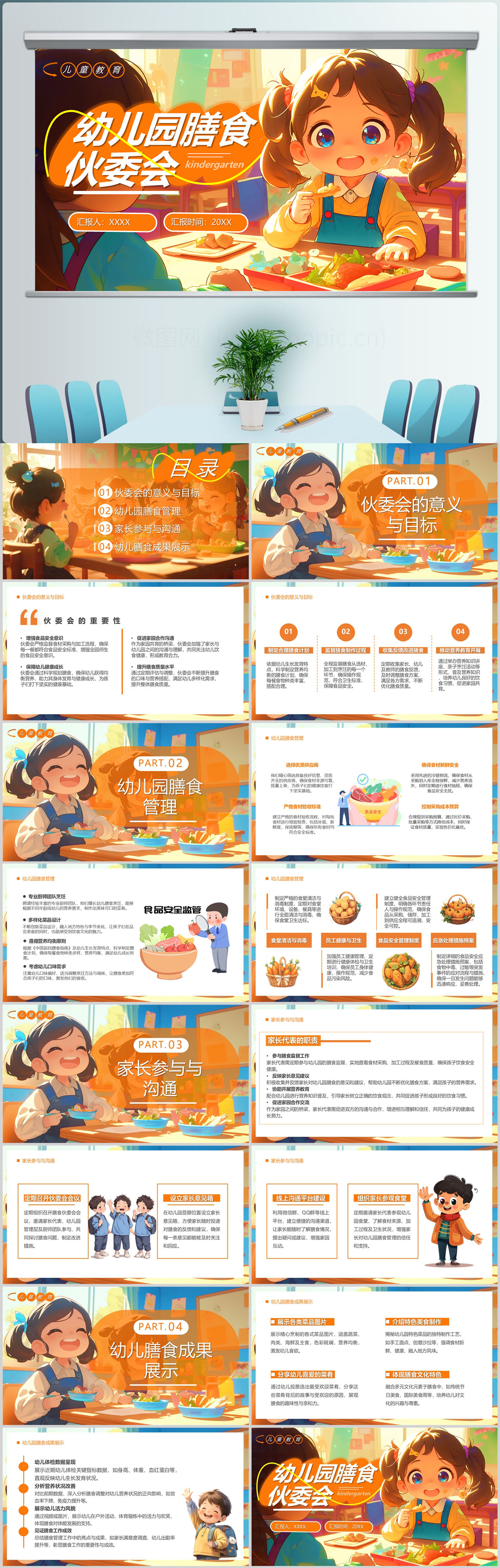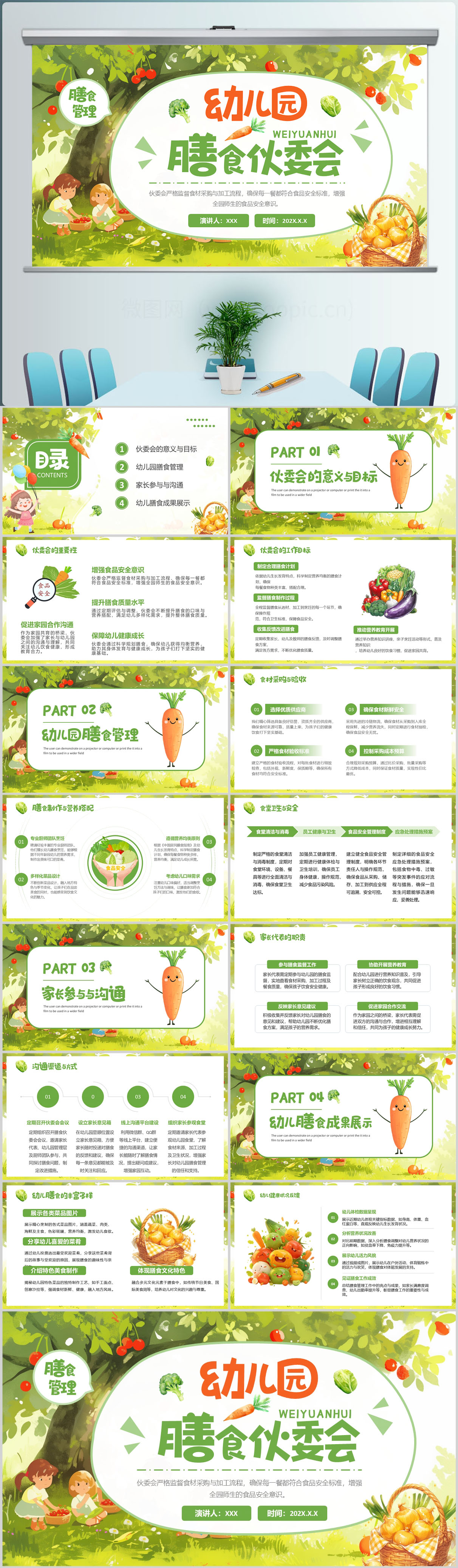 清新风幼儿园膳食伙委会PPT模板设计
