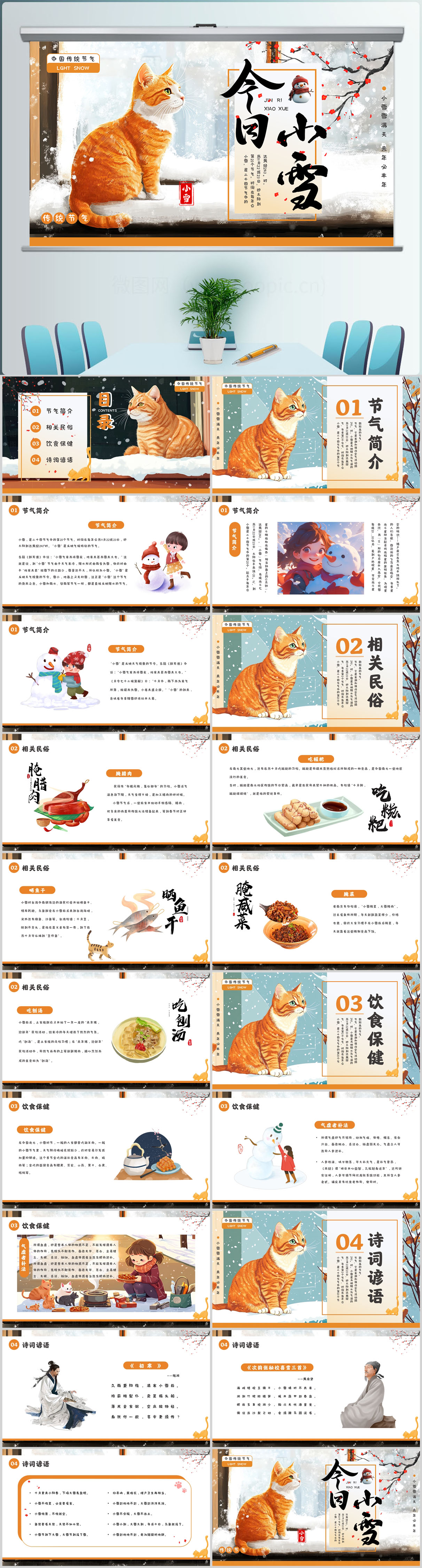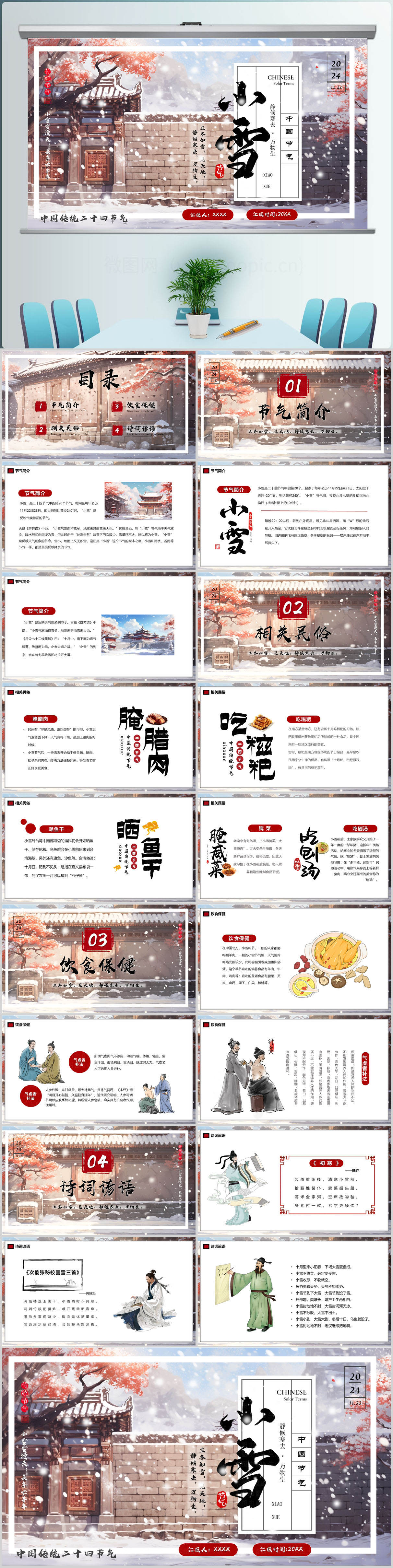 二十四节气之小雪介绍PPT模板设计