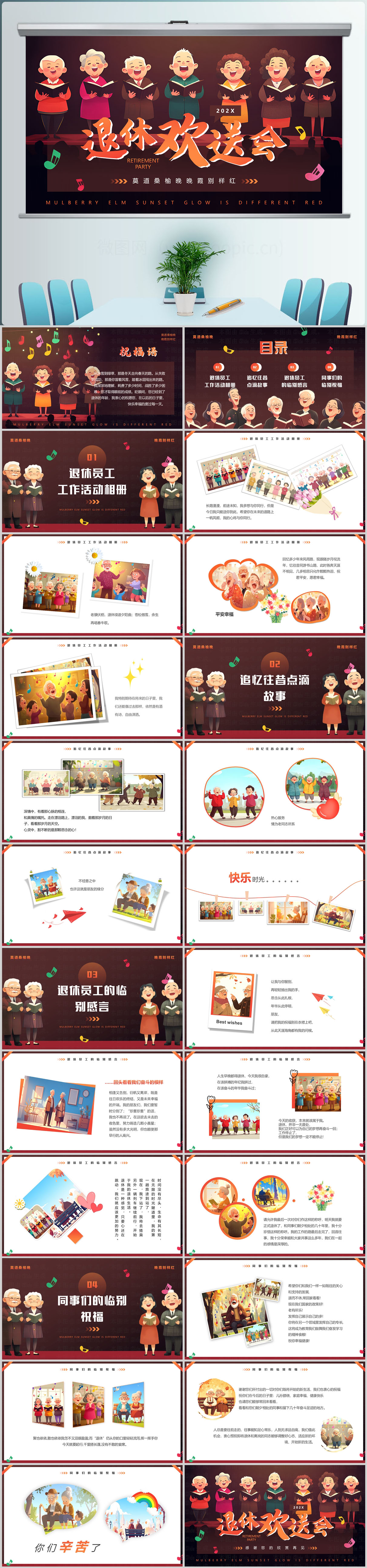 退休欢送会相册PPT模板设计