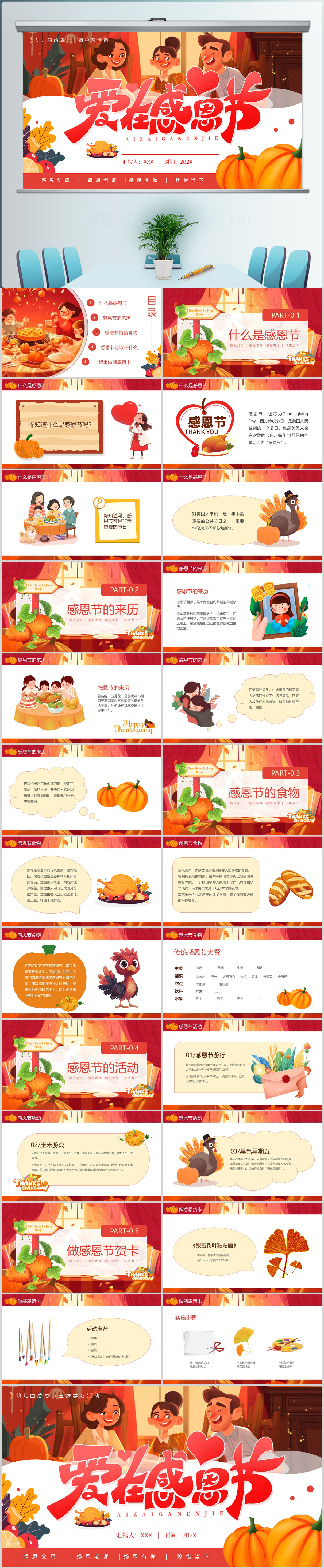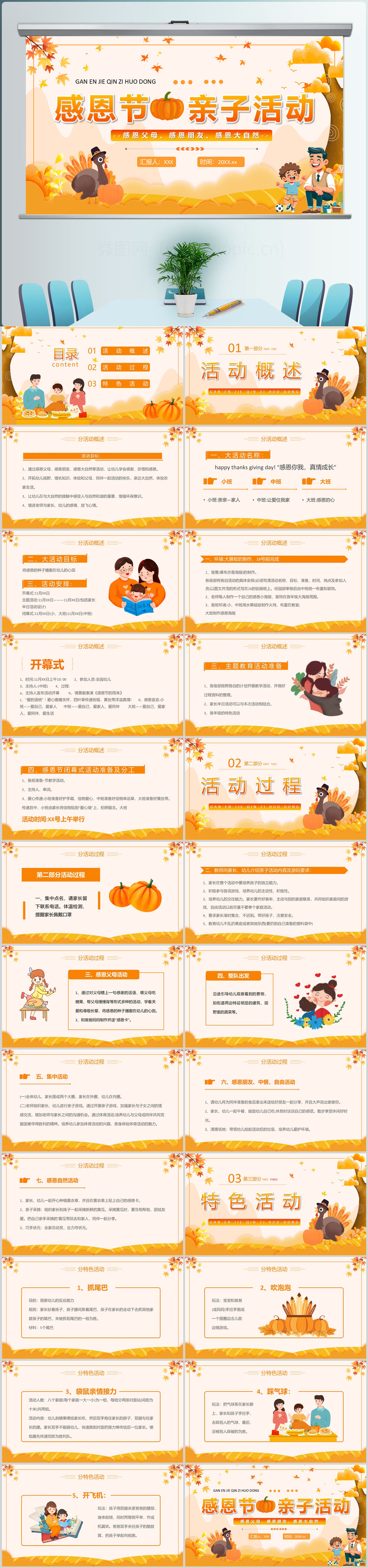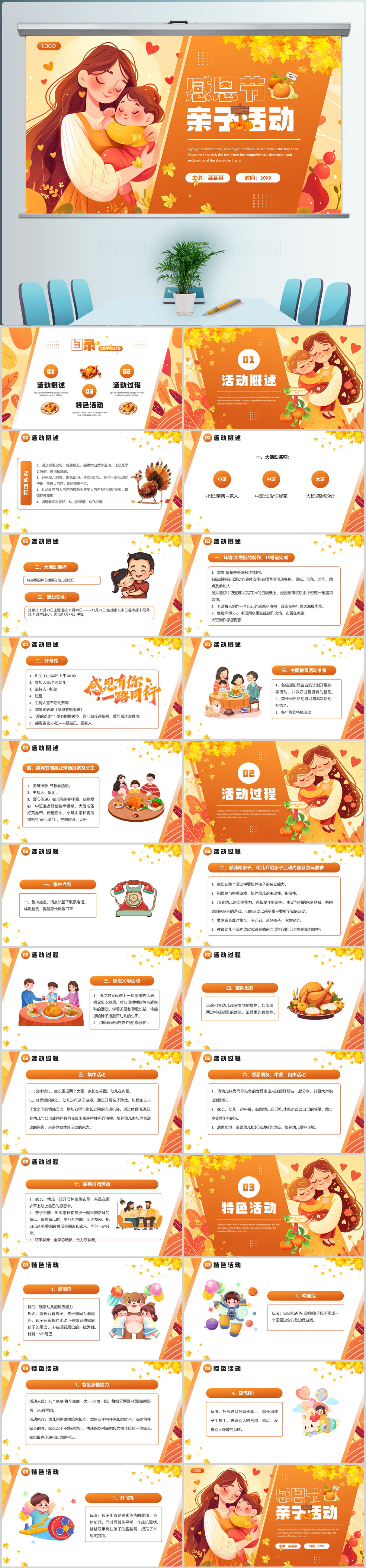橙色感恩节亲子活动PPT模板设计