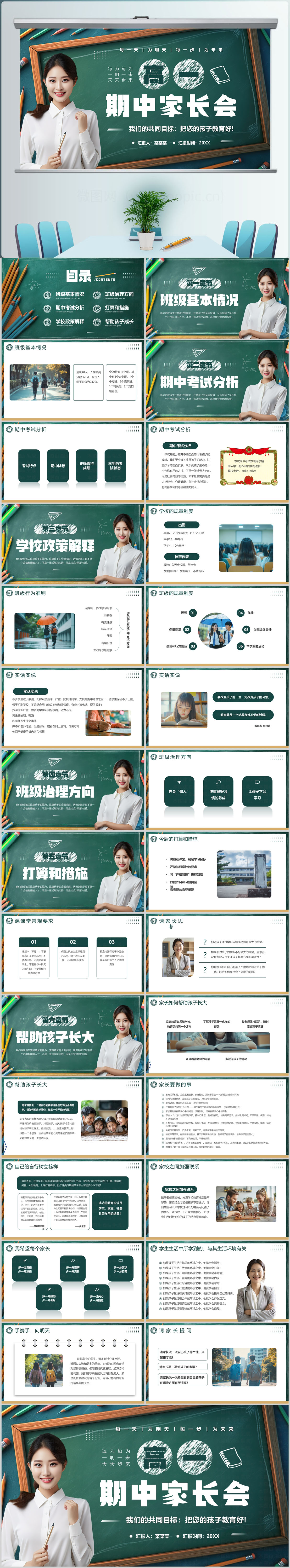 绿色黑板风高一家长会PPT模板设计