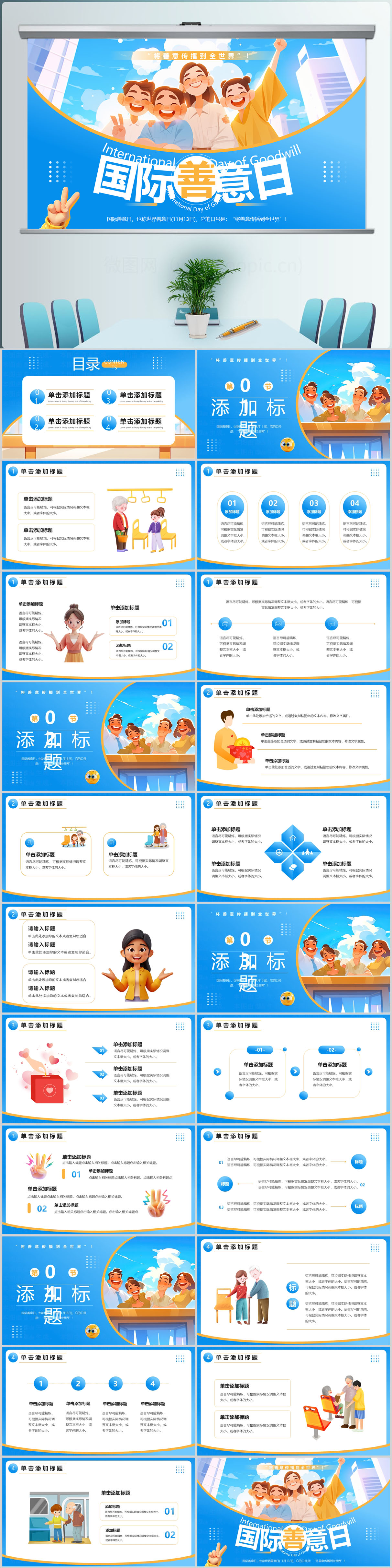 蓝色世界善意日PPT模板设计