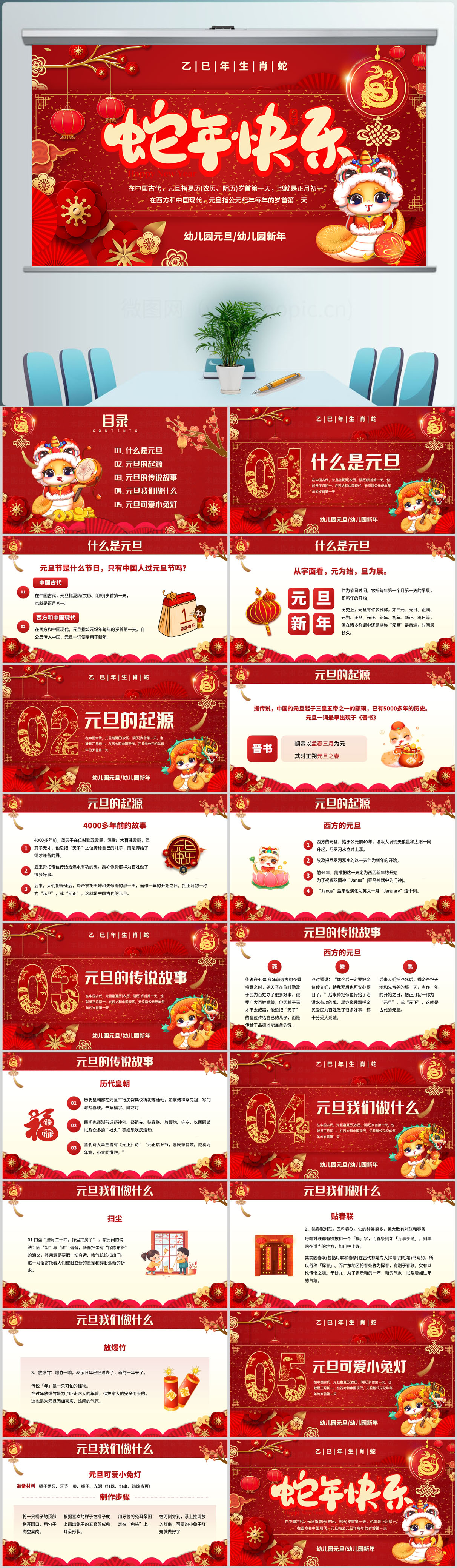 红色新年快乐迎新春蛇年大吉通用PPT模版