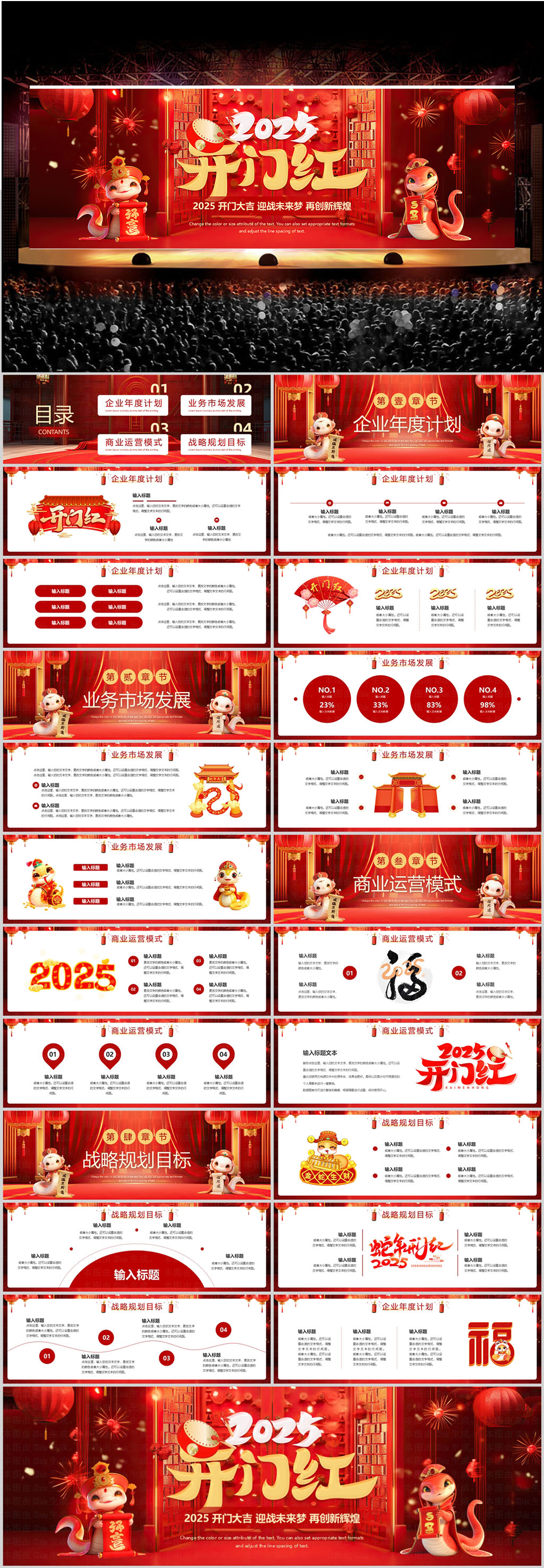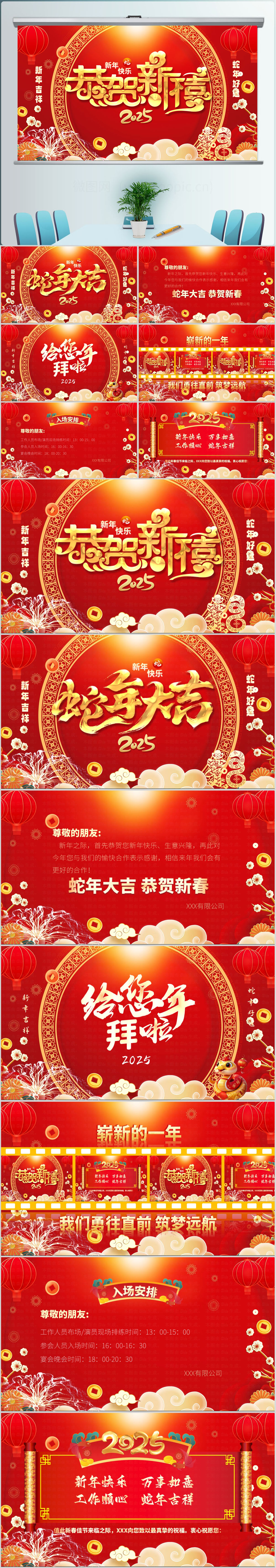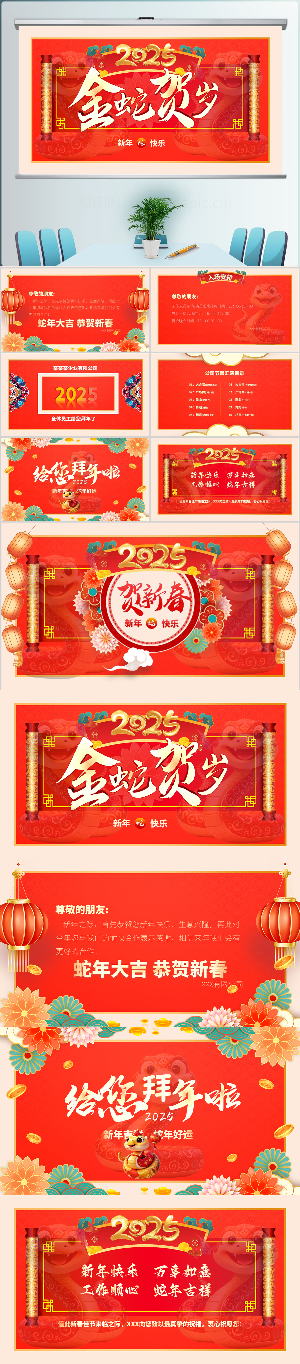 2025蛇年贺新春新年元旦春节晚会活动贺卡通知PPT模板