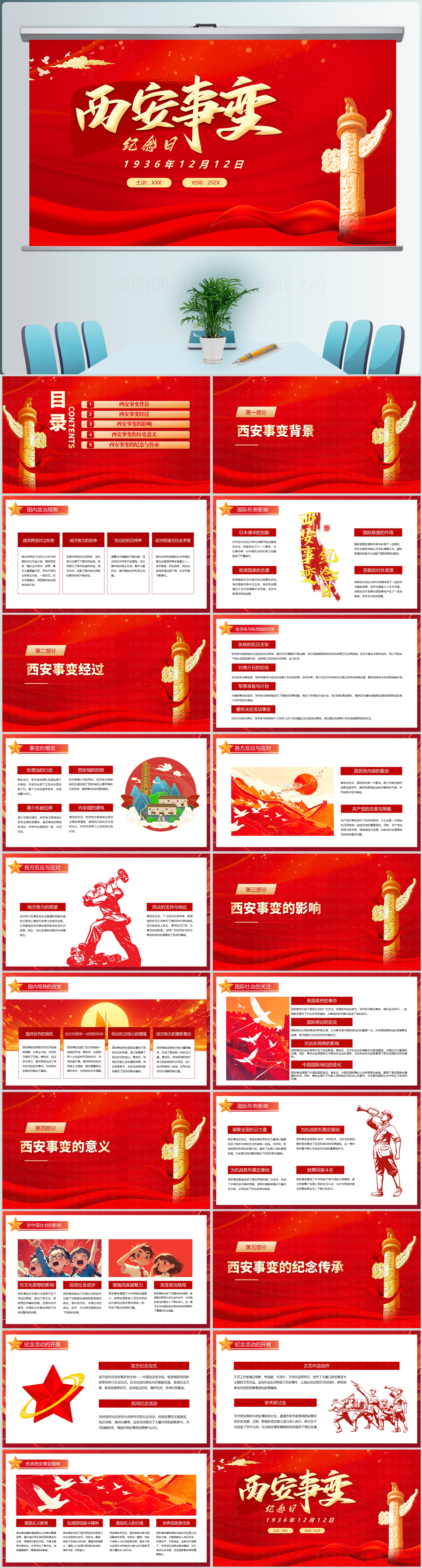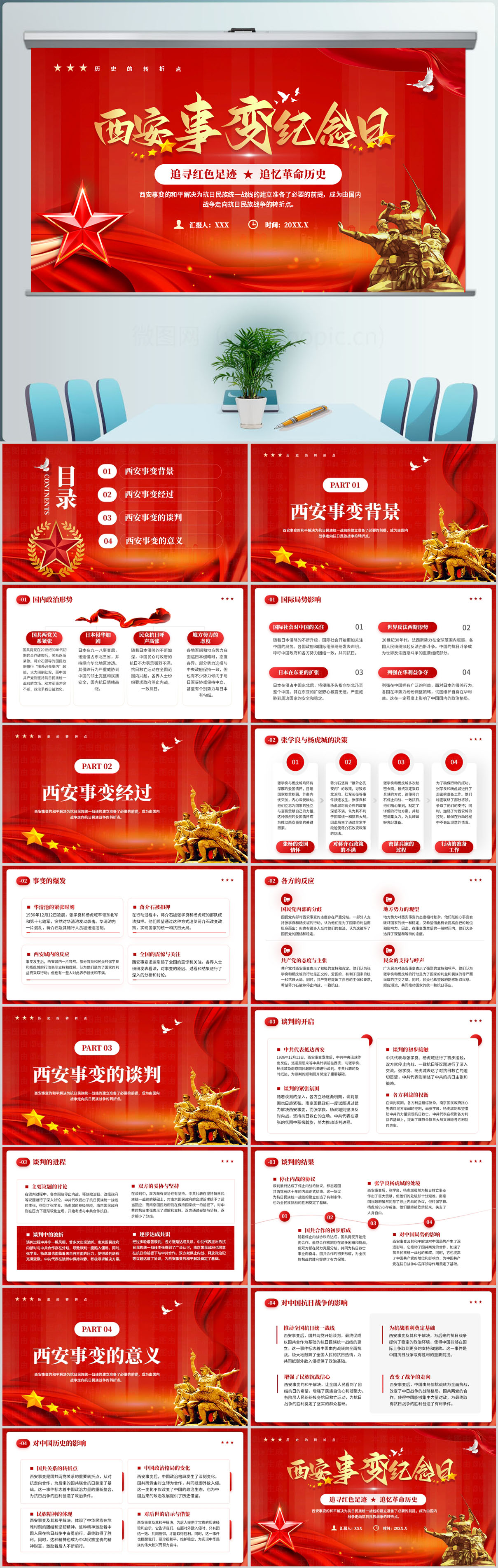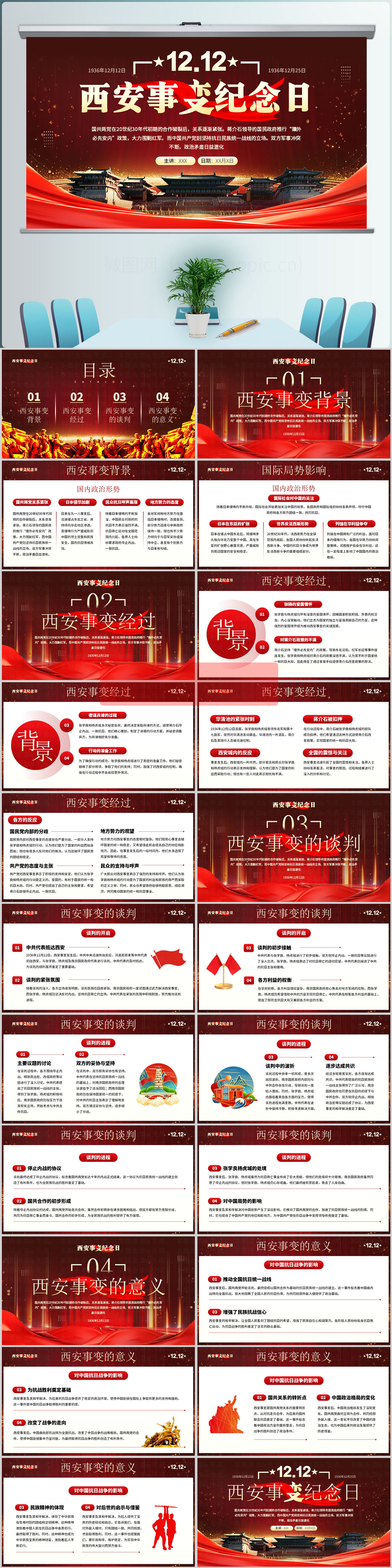 12.12纪念西安事变主题介绍ppt模板