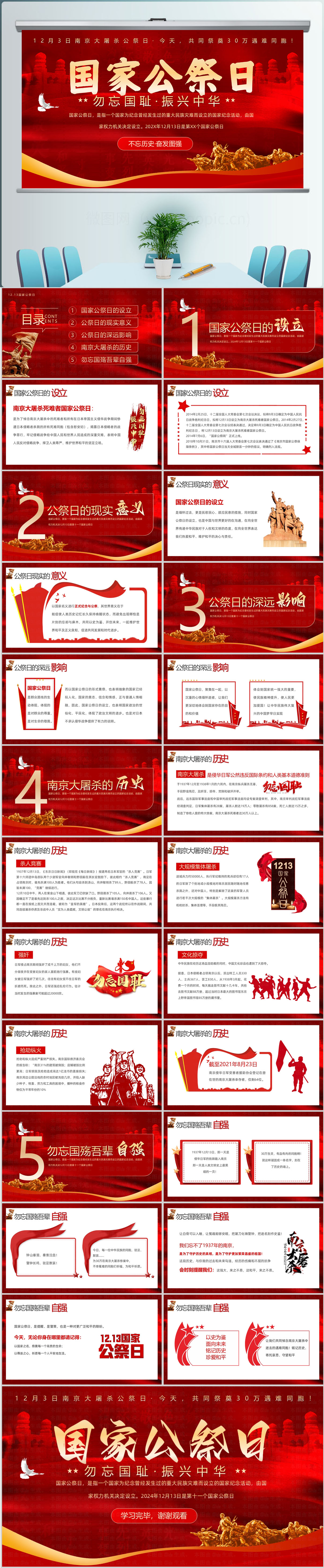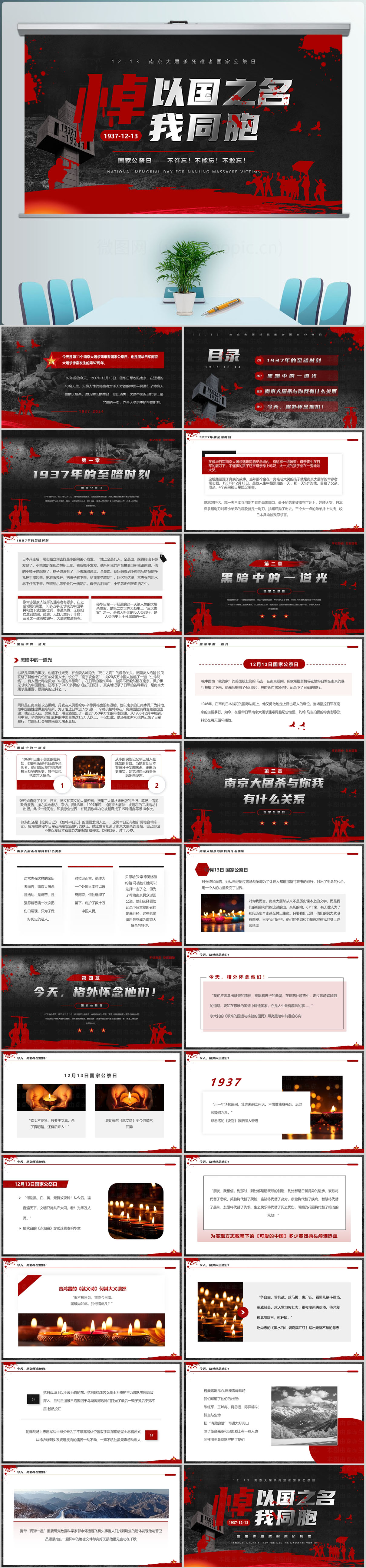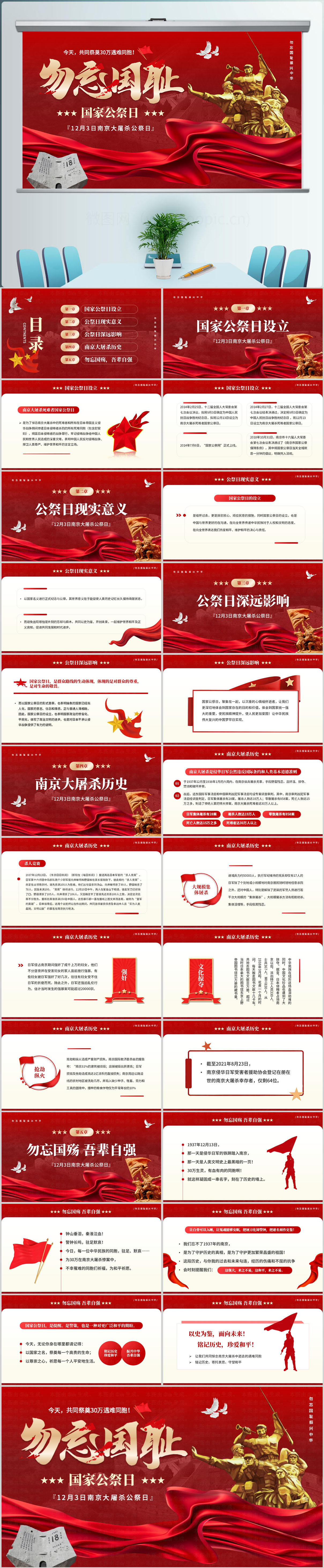 红色风勿忘国耻铭记历史国家公祭日主题介绍PPT模板