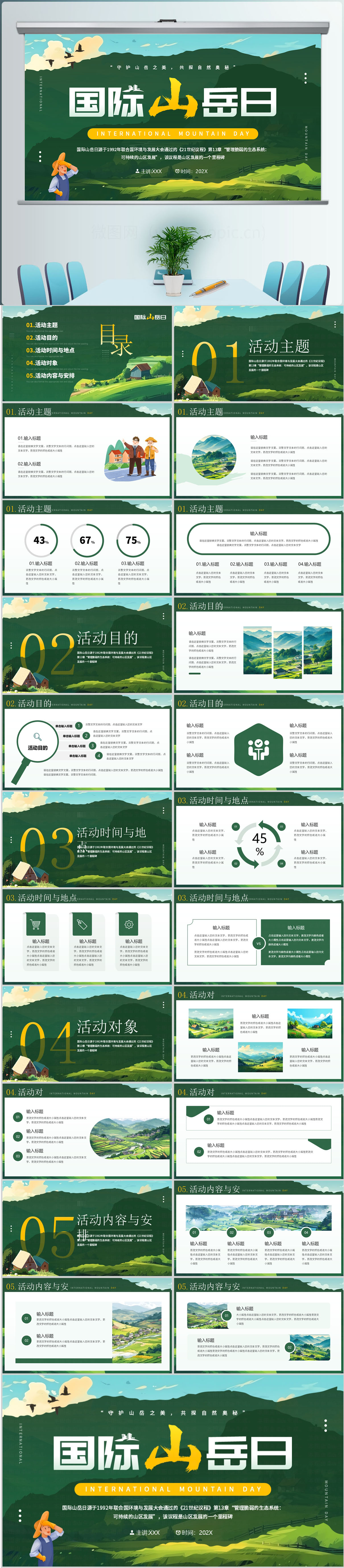 2025绿色大气国际山岳日主题介绍课件PPT模板