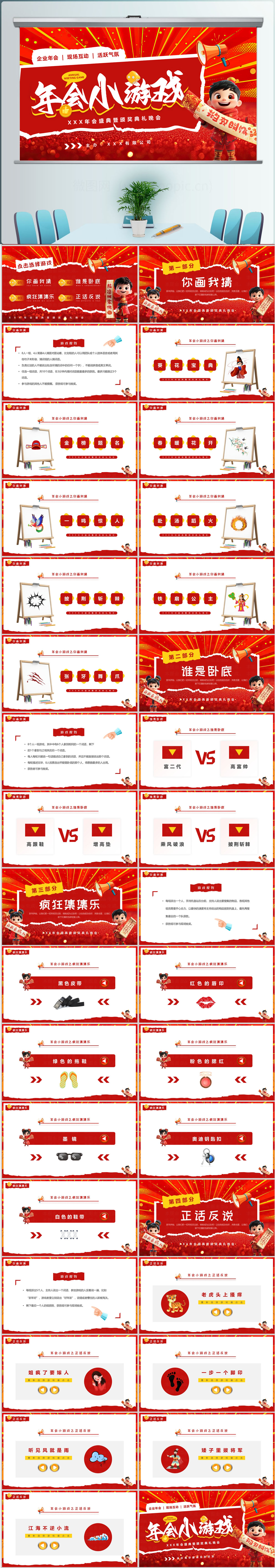 2025红色喜庆年会小游戏活动介绍PPT模板