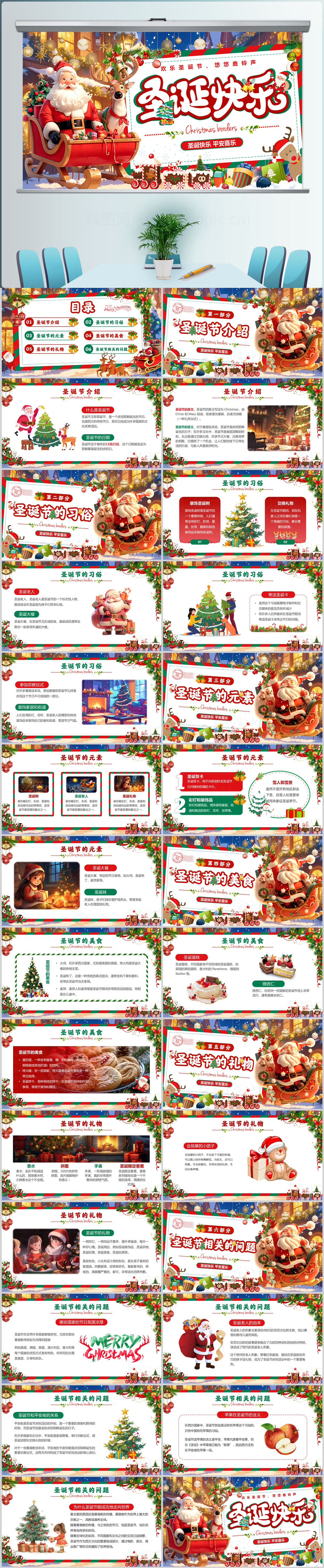卡通圣诞节快乐圣诞节由来圣诞节活动PPT模板设计