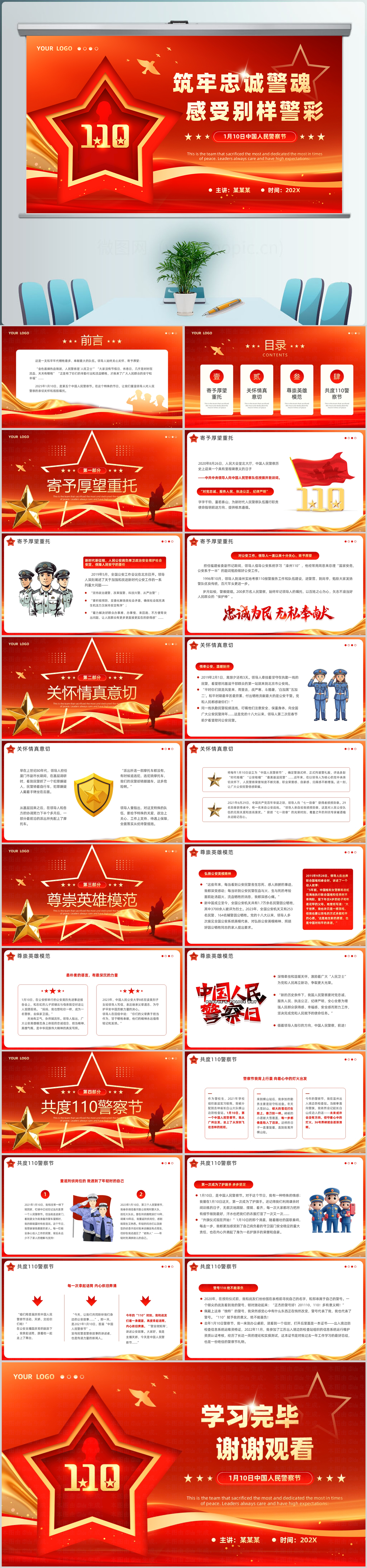 红色党政风筑牢忠诚警魂感受别样警彩中国人民警察节党课PPT模板