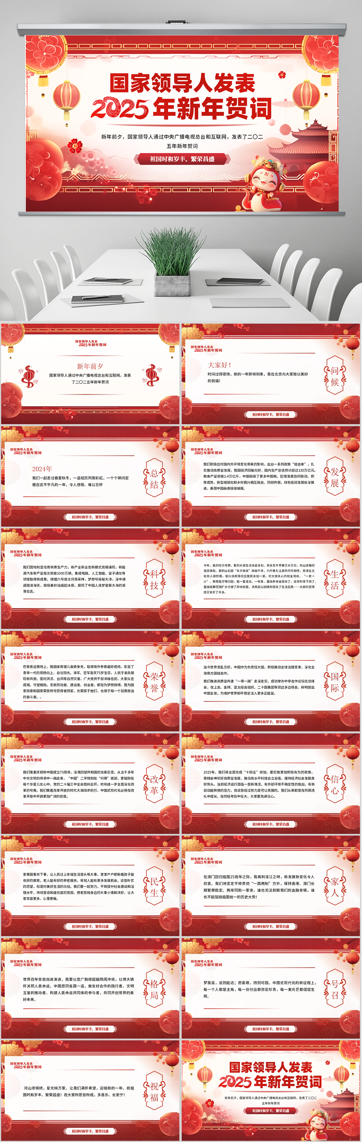 2025年新年贺词全文学习ppt模板