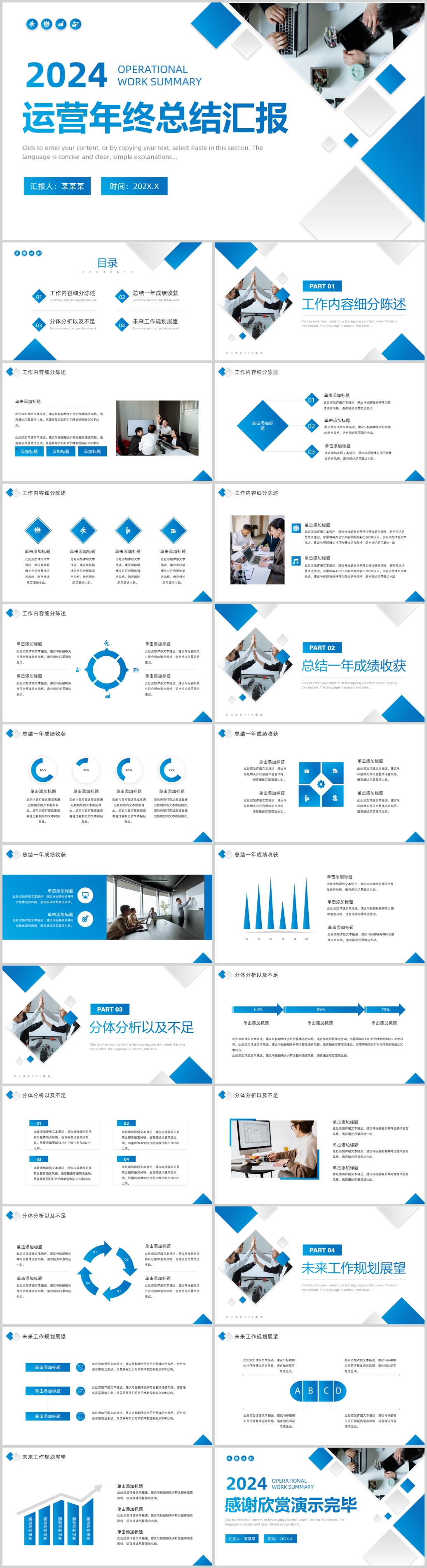 2024蓝色商务通用工作总结汇报计划ppt模板