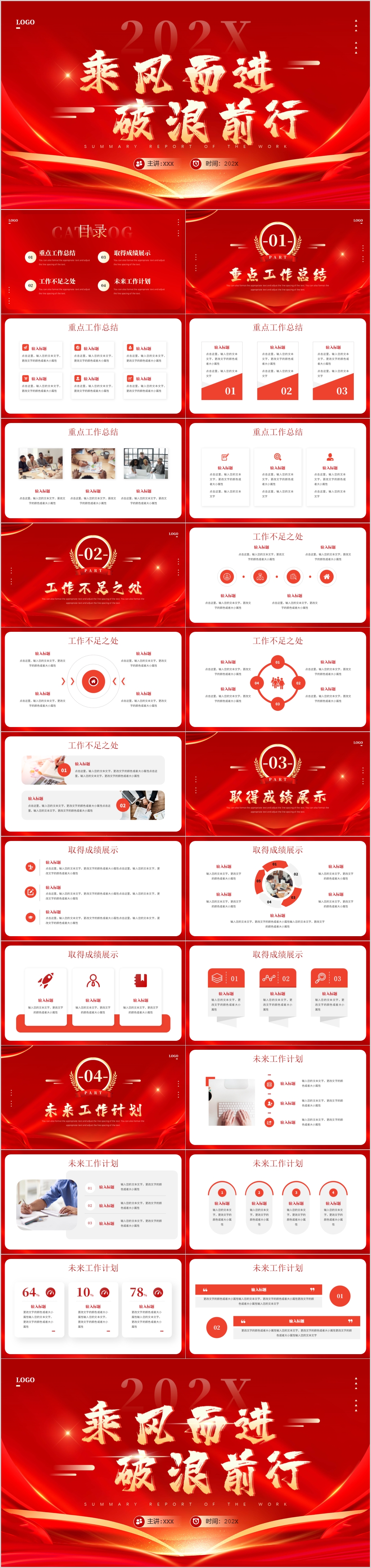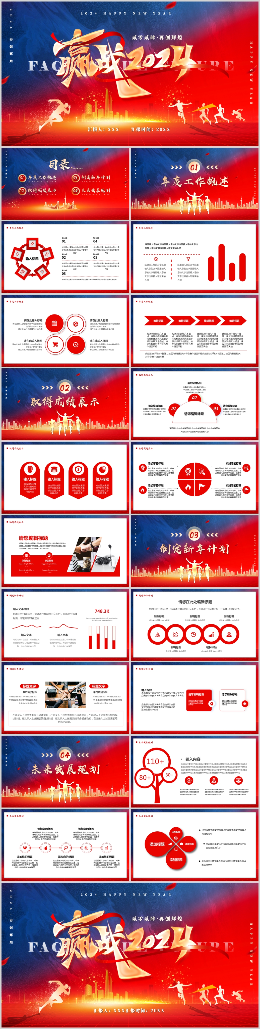 2024龙年红色喜庆乘风破浪年终总结暨新年计划ppt模板