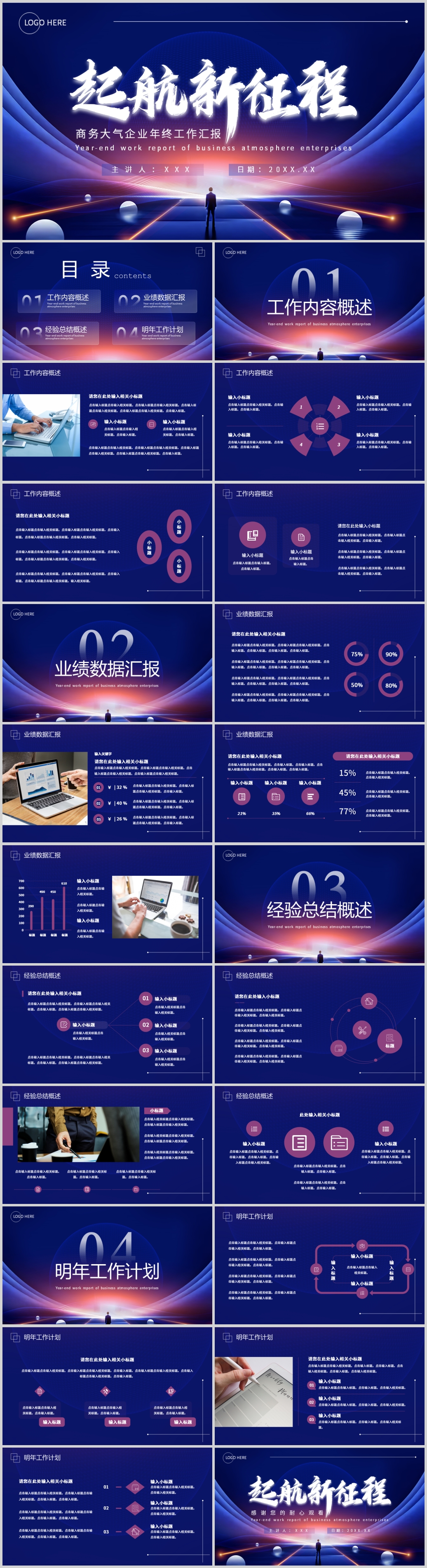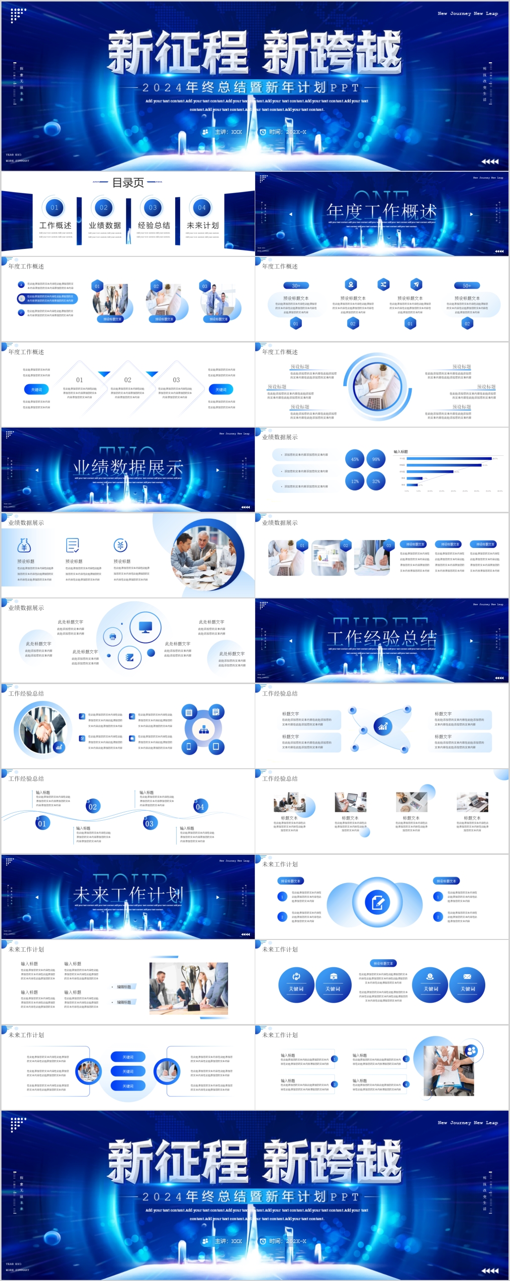新征程新跨越2024蓝色商务年终总结新年计划宽屏ppt模板