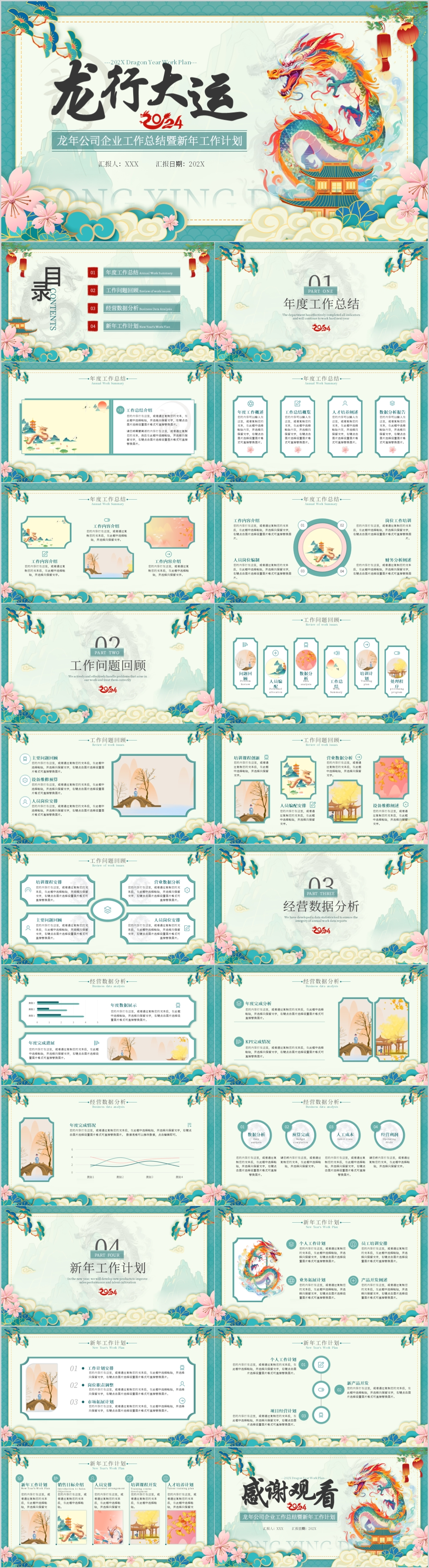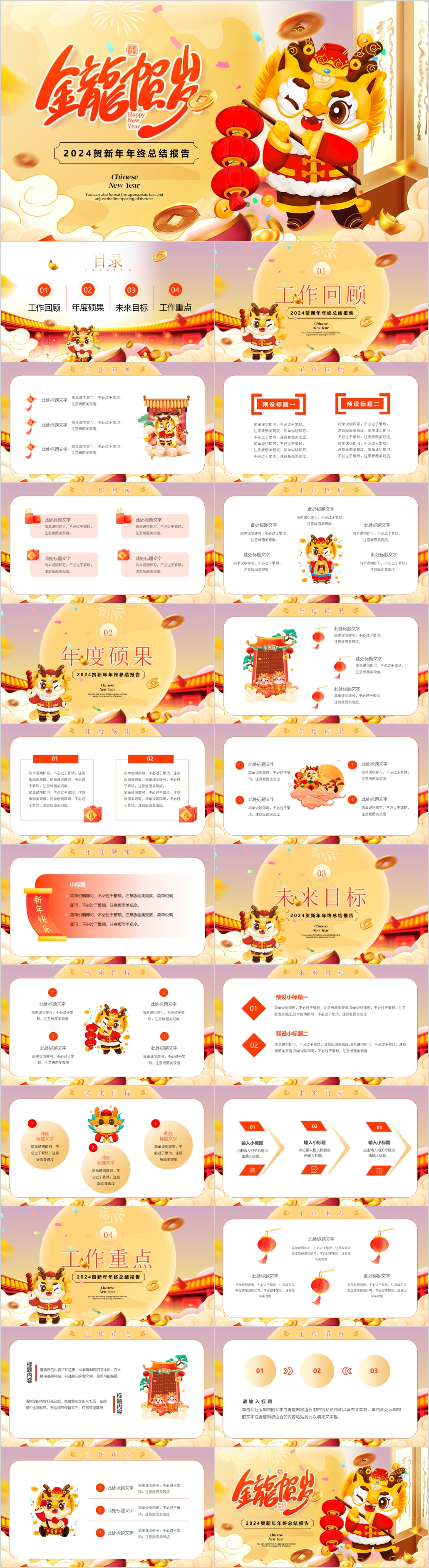 2024国潮风龙年新年年终总结暨工作计划ppt模板