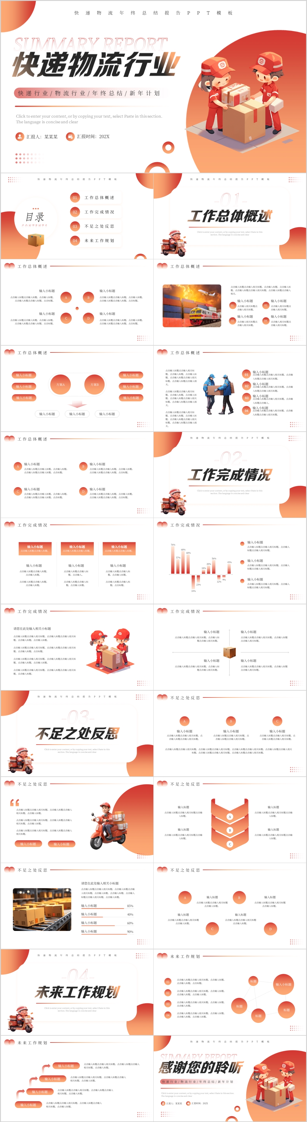 2024简约商务物流快递工作汇报工作总结ppt模板