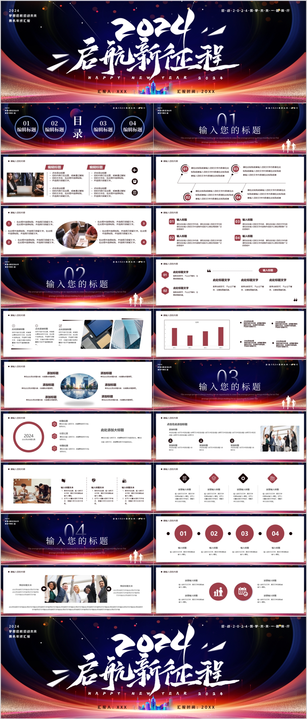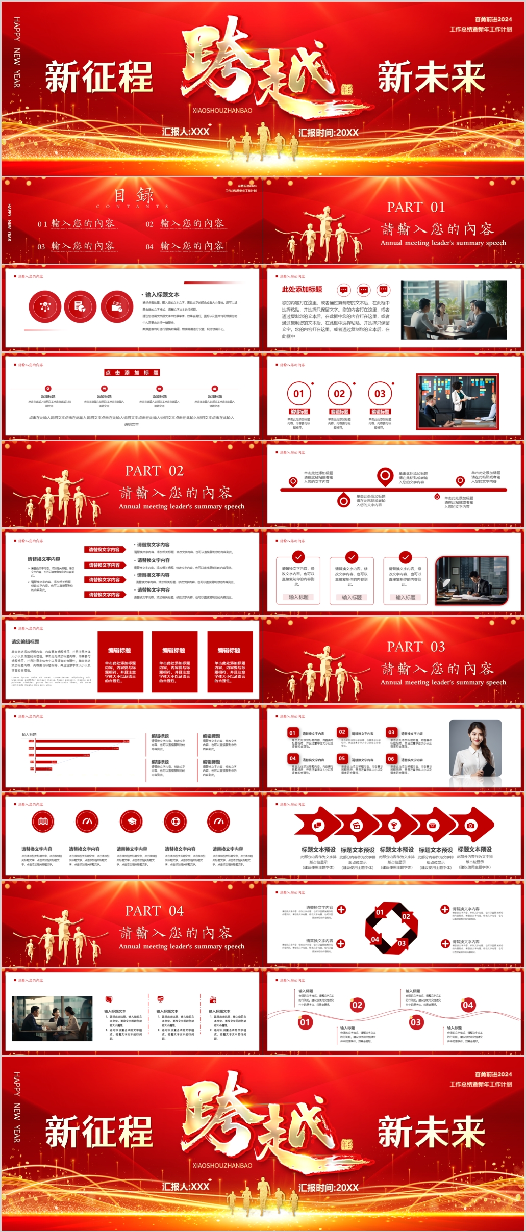 2024年红色喜庆新征程跨越新未来新年工作计划宽屏ppt模板