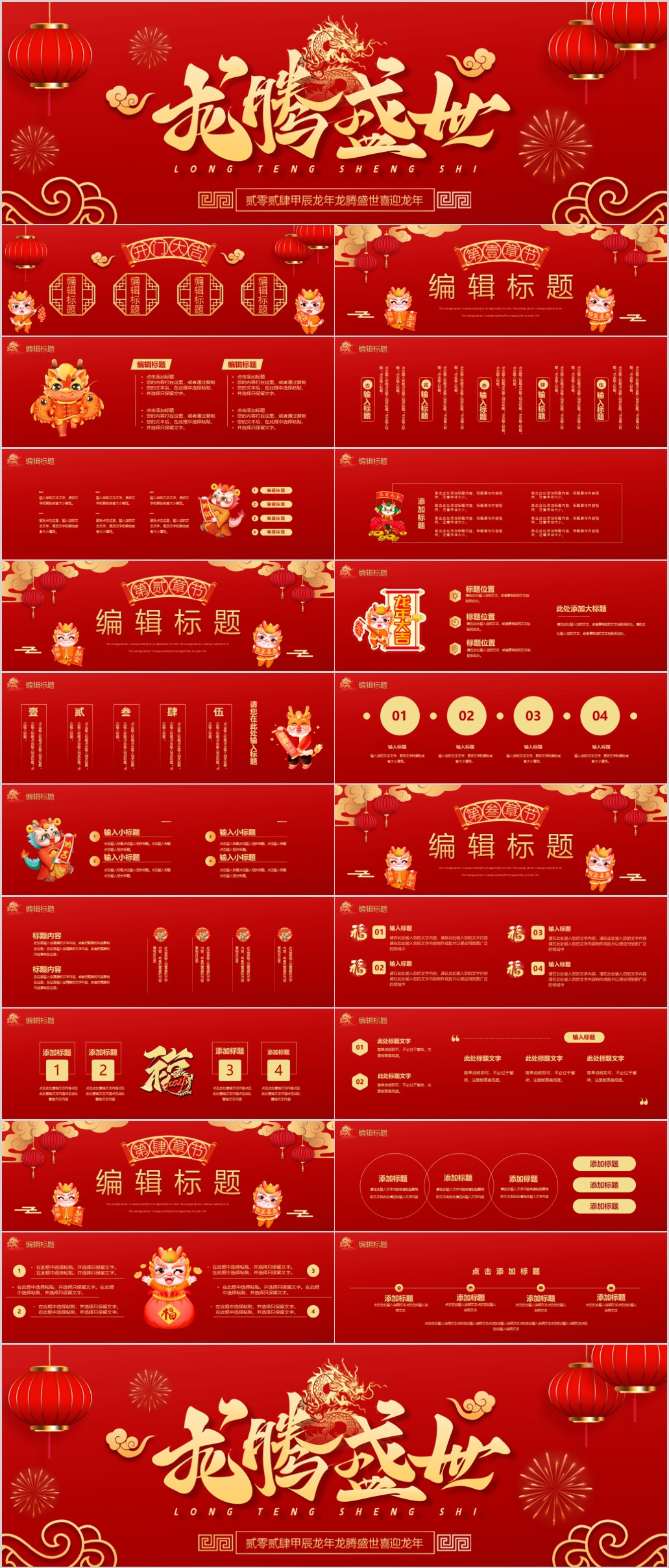 202宽屏红色中国风喜庆龙腾盛世通用工作总结计划ppt模板