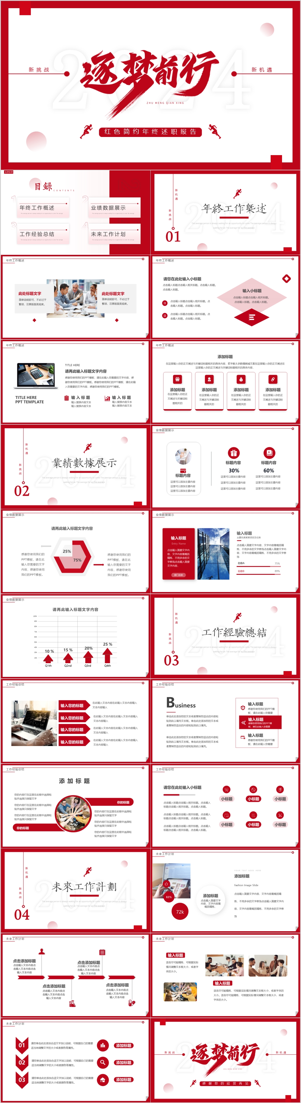 红色简约新挑战追梦前行2024年终总结新年计划通用PPT模板