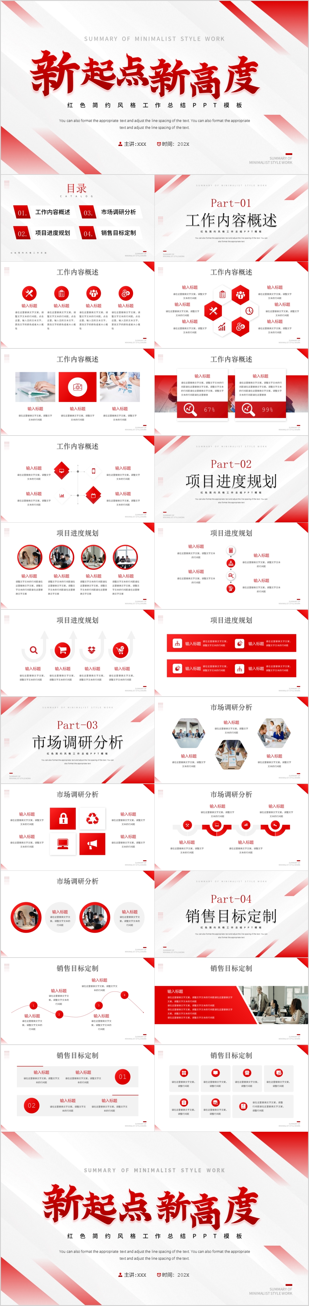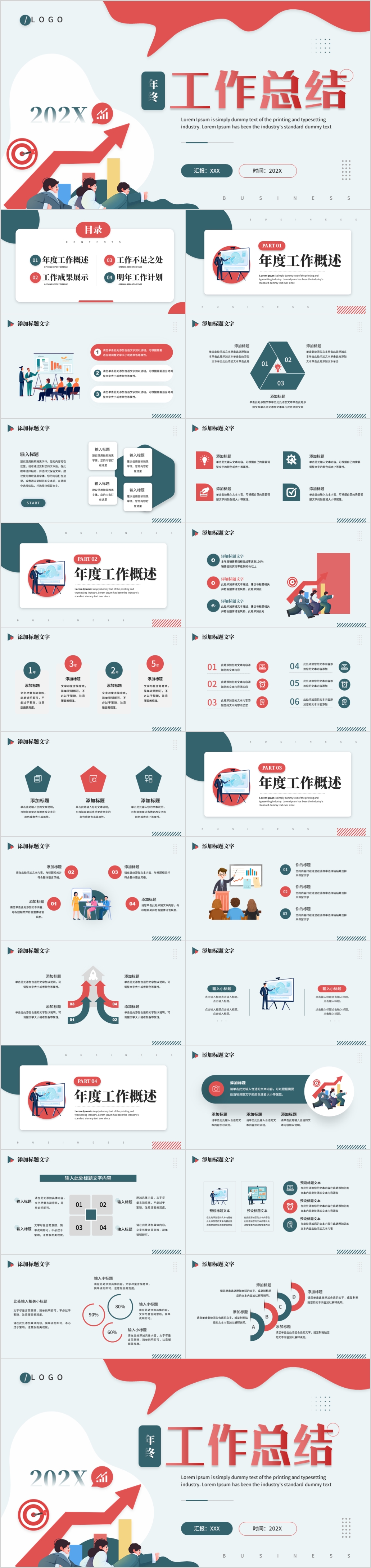 2024年红色简约风年终总结暨新年计划通用PPT模板