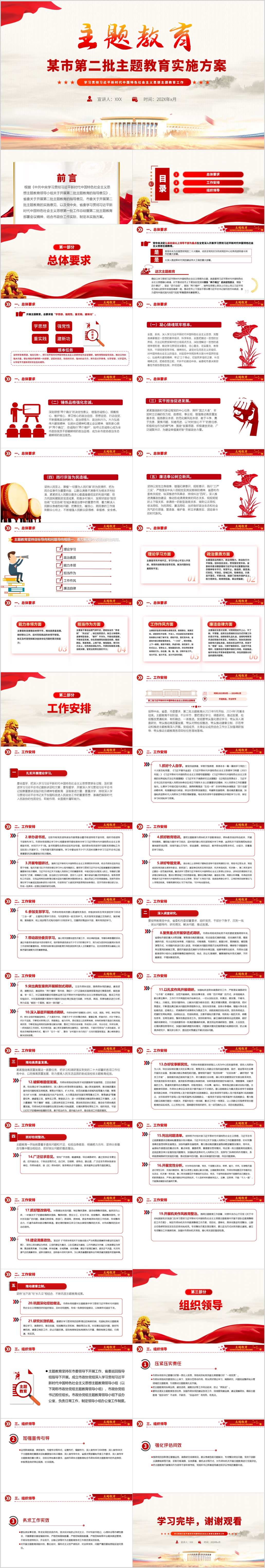 2023第二批主题教育实施方案部署党课PPT模板(内含WORD演讲稿)