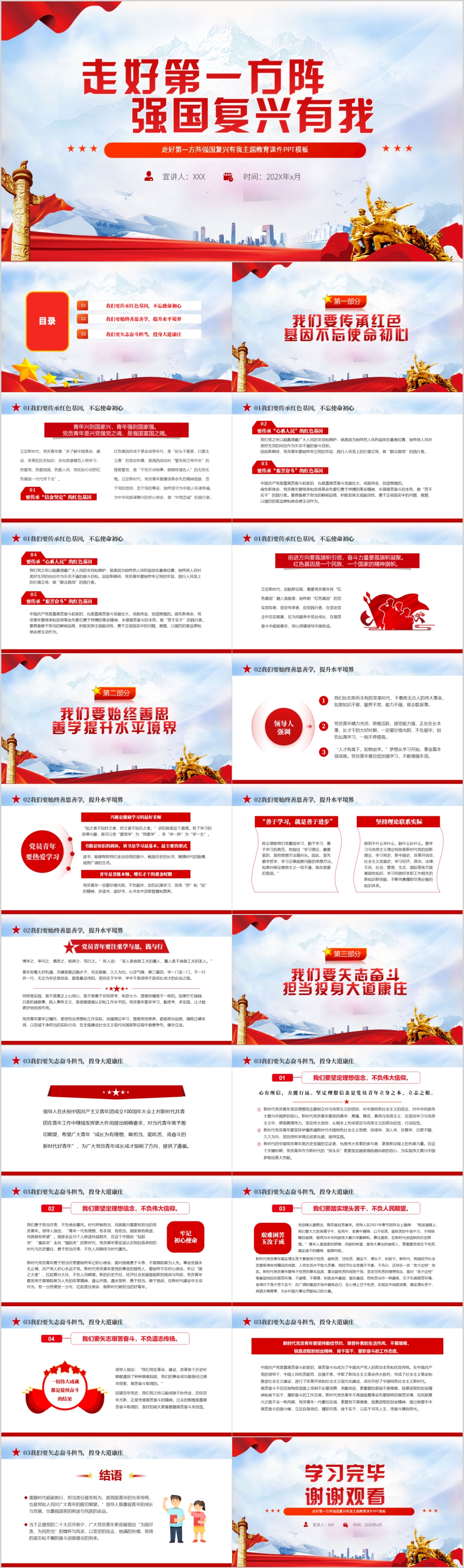 走好第一方阵强国复兴有我传承红色基因党课PPT模板