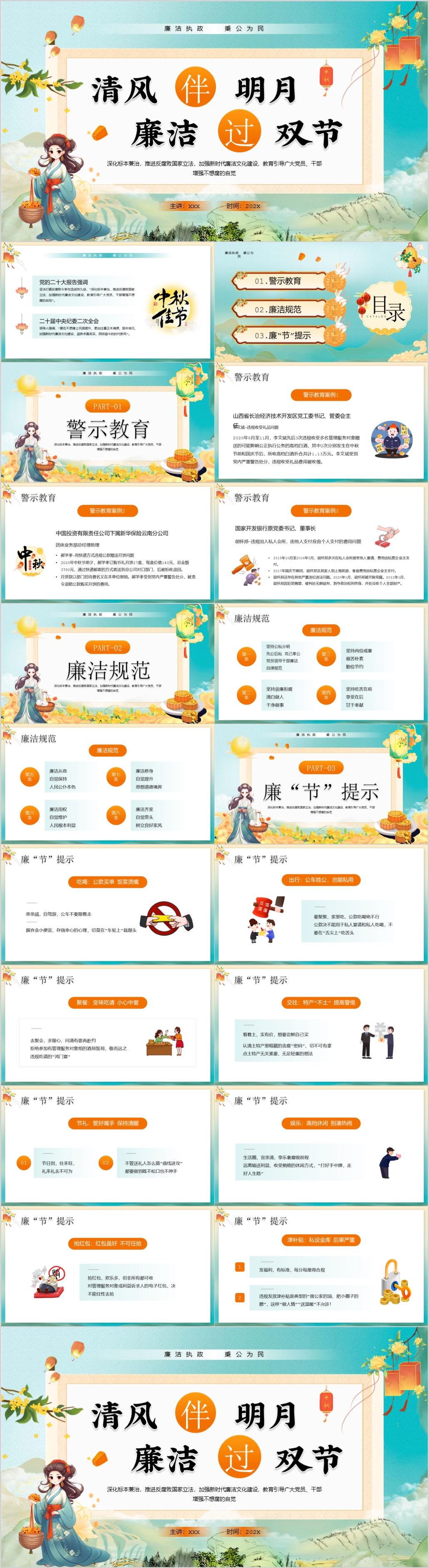 2023清风伴明月廉洁过中秋国庆双节教育主题党课PPT模板