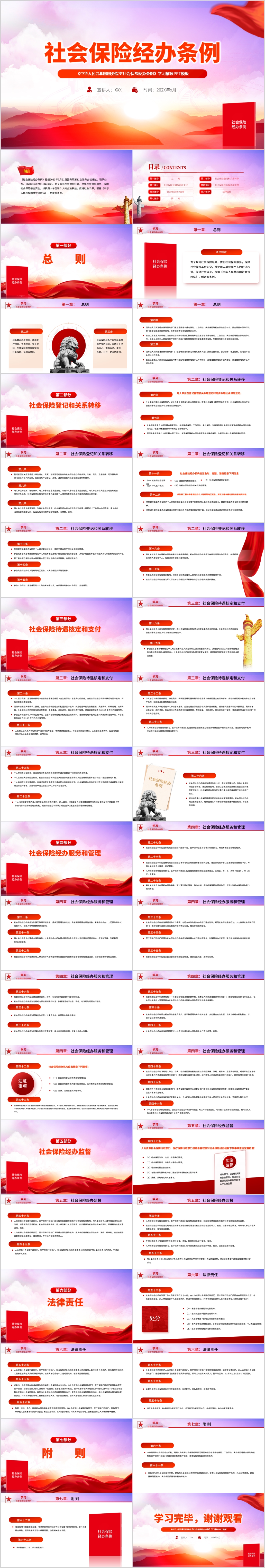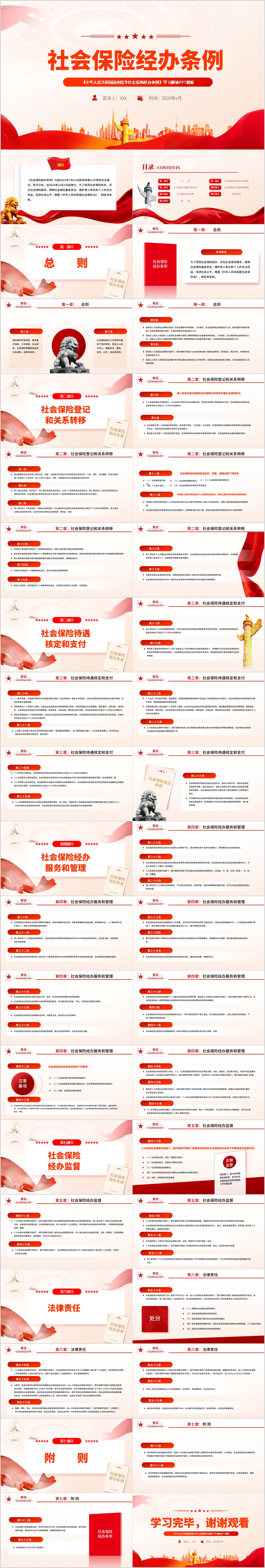 2023社会保险经办条例学习解读ppt模板(内含WORD演讲稿)
