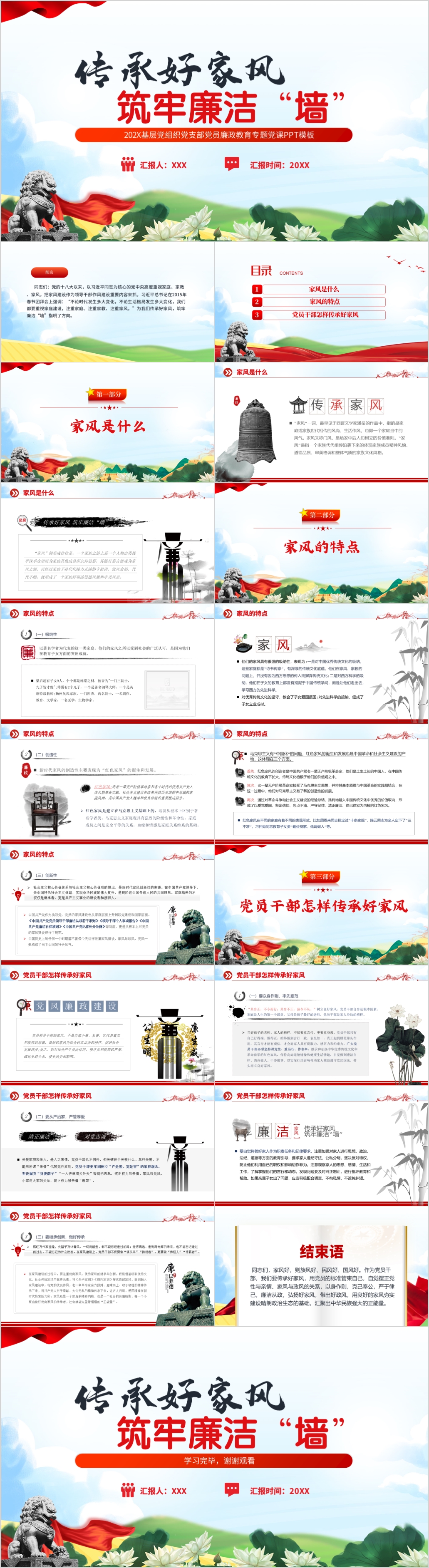 2023年传承好家风筑牢廉洁墙廉政教育微党课PPT模板