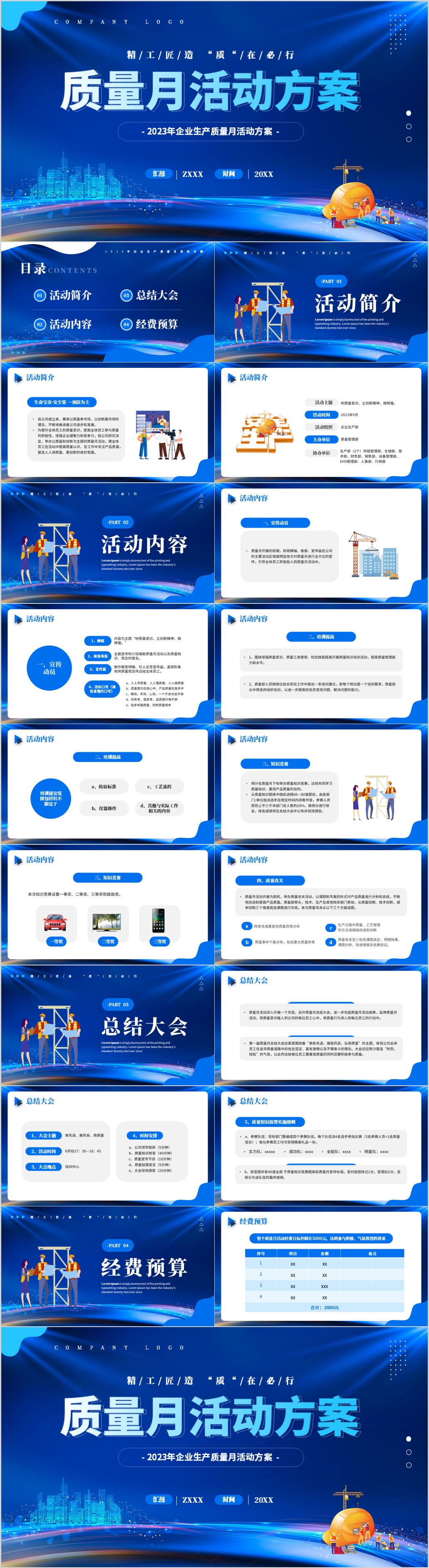 2023蓝色全国质量月主题活动介绍ppt模板