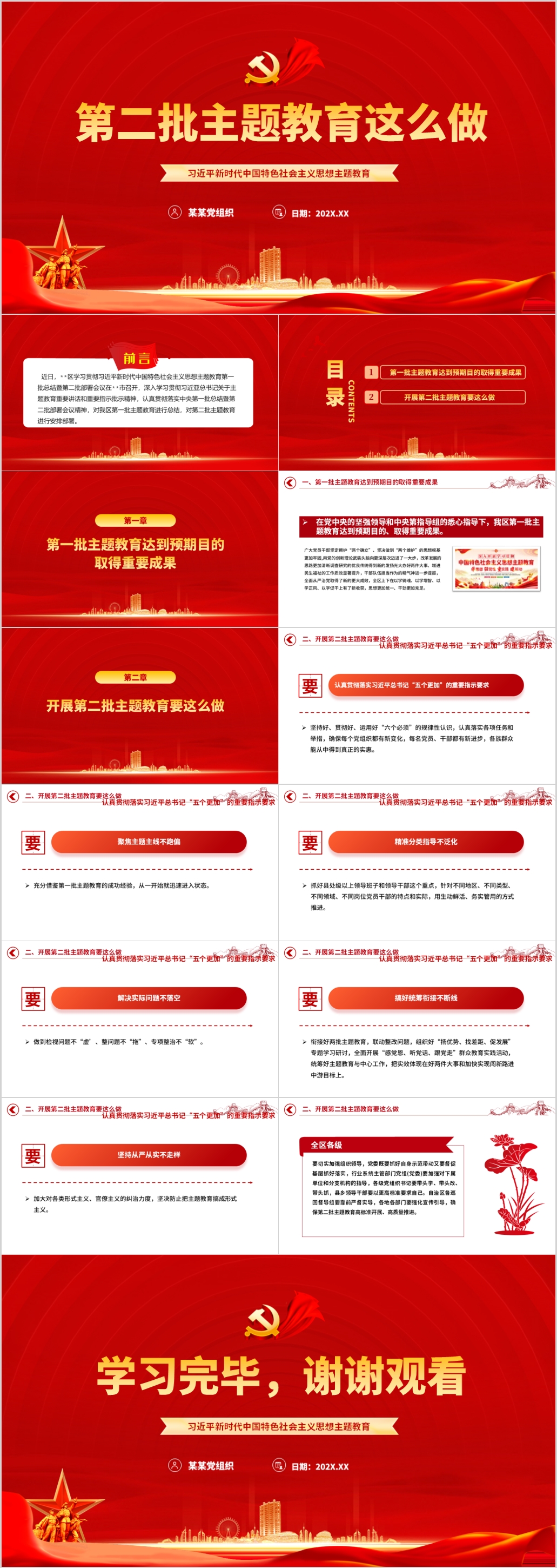 第二批主题教育总结报告真抓实干推动主题教育工作走在前列党课ppt模板(内含