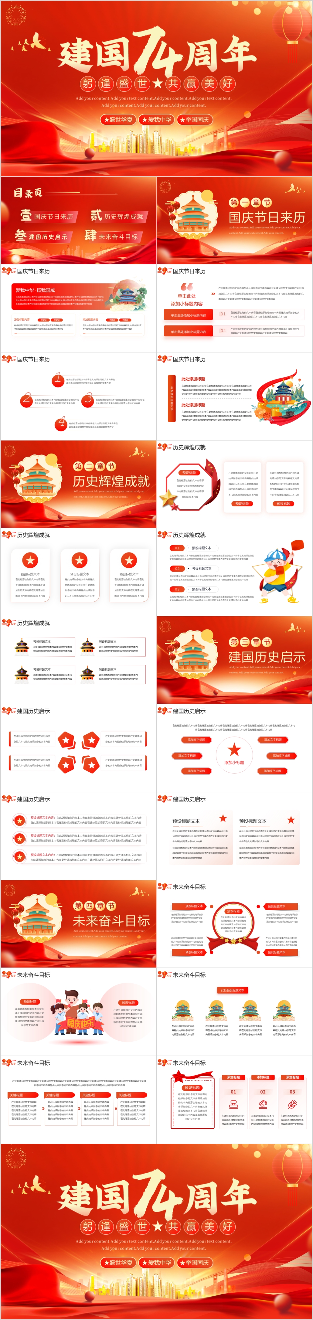 红色党政风国庆庆典新中国成立74周年通用ppt模板