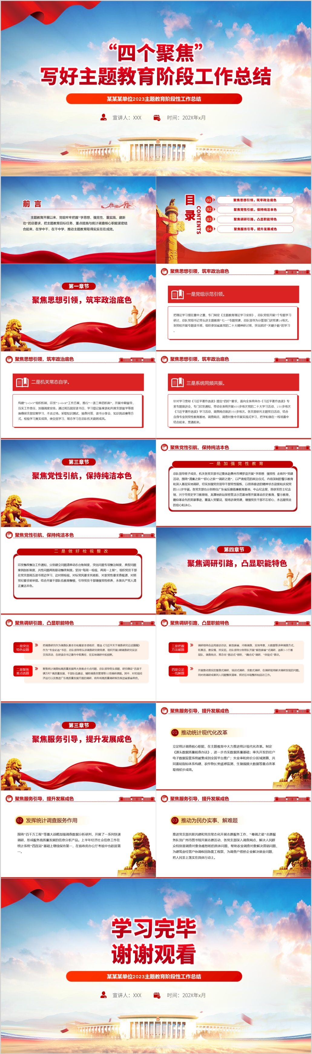 2023年“四个聚焦” 写好主题教育阶段工作总结通用ppt模板(内含WORD演讲稿)
